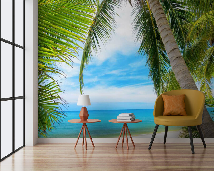 Trasformate il vostro spazio in un paradiso balneare con il murales Palm Trees on a Beach. Immaginate di svegliarvi con il dolce ondeggiare delle foglie di palma e il suono rilassante delle onde: è come una vacanza a casa! Questo murale porta un tocco di vibrazioni tropicali, rendendo ogni stanza più invitante. I colori vivaci e lo scenario rilassante invitano a sognare cieli soleggiati e sabbie calde. Gli amici si chiederanno se avete comprato di nascosto una casa al mare. Immaginatevi vivaci riunioni davanti a drink tropicali o accoglienti mattinate a sorseggiare caffè con questa splendida vista come sfondo. È più di un semplice arredamento: è una fuga quotidiana!