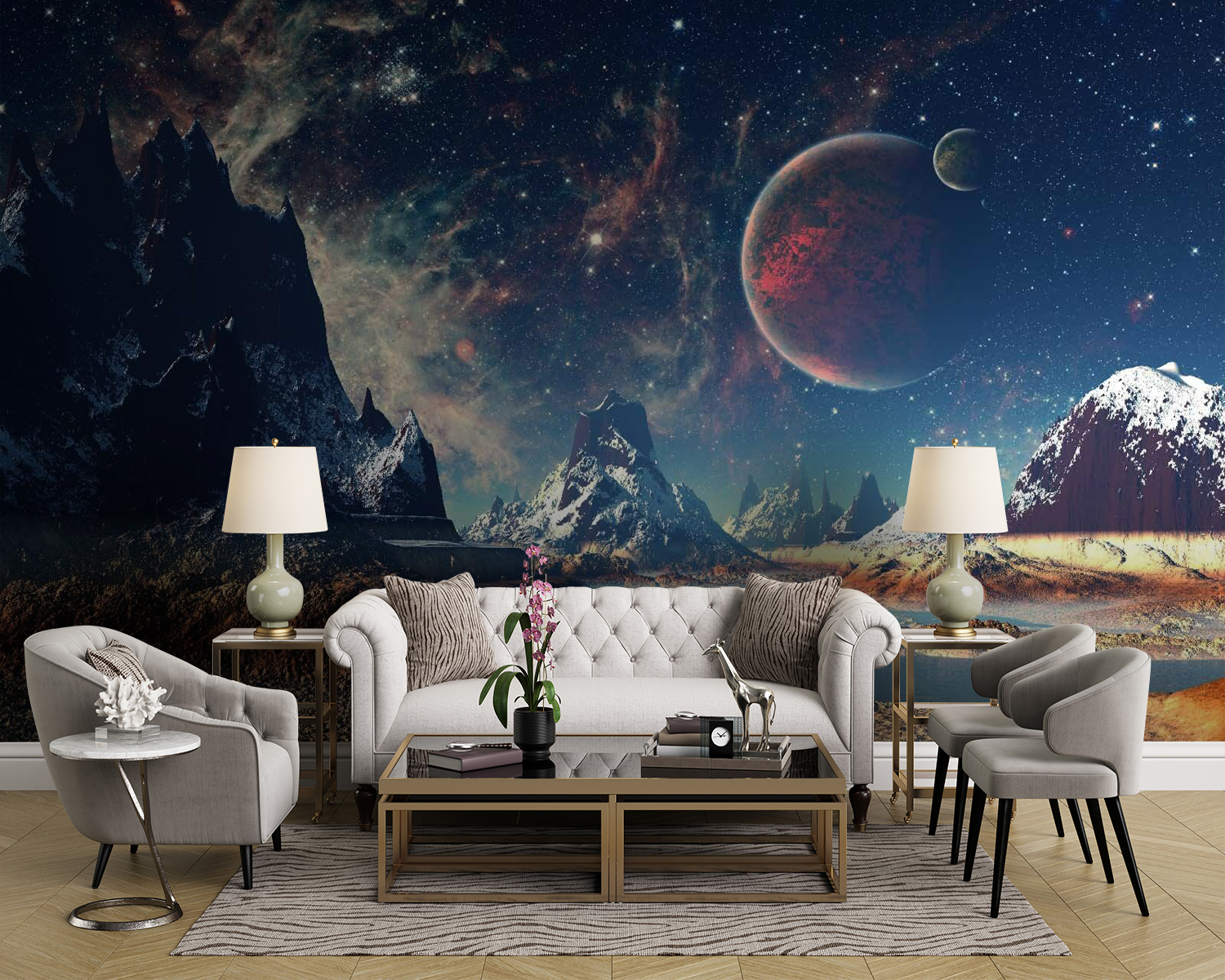 Trasformate qualsiasi spazio con questo splendido murale di montagna, dove le cime innevate incontrano uno sfondo stellato e cosmico. Immaginate di entrare in una stanza che sembra un’avventura, dove ogni sguardo verso le montagne fa sognare di esplorare mondi inesplorati. Questo pezzo porta un senso di evasione direttamente sulle vostre pareti, come se steste guardando galassie lontane mentre sorseggiate il vostro caffè mattutino. È il tipo di arredamento che non solo abbellisce, ma ispira anche. Perfetto per un angolo accogliente o per quella parete che ha bisogno di un po’ di amore in più. Fate sentire la vostra casa come un portale verso un luogo straordinario.