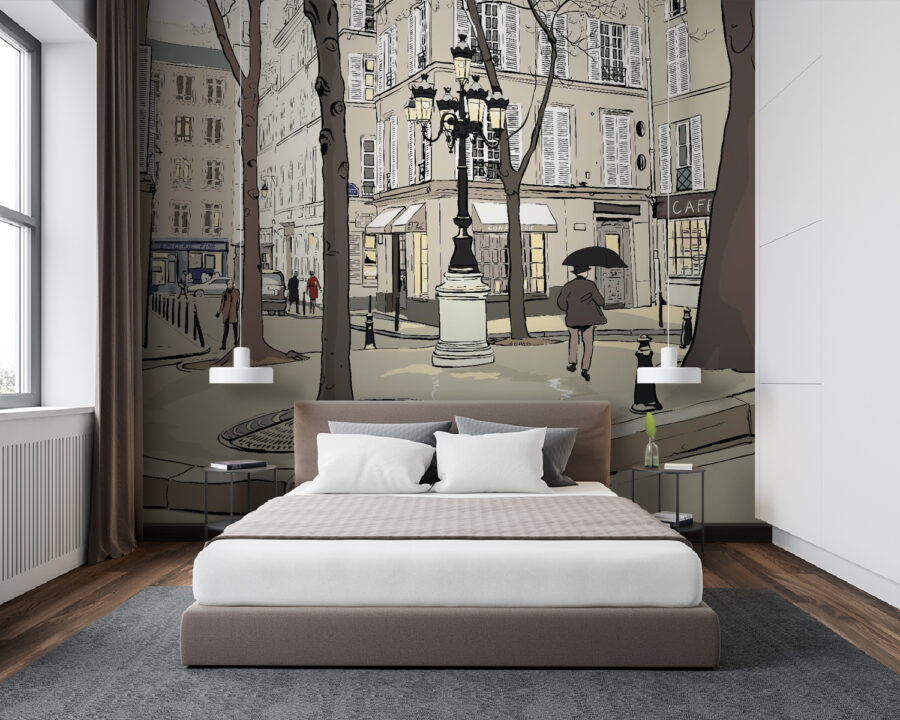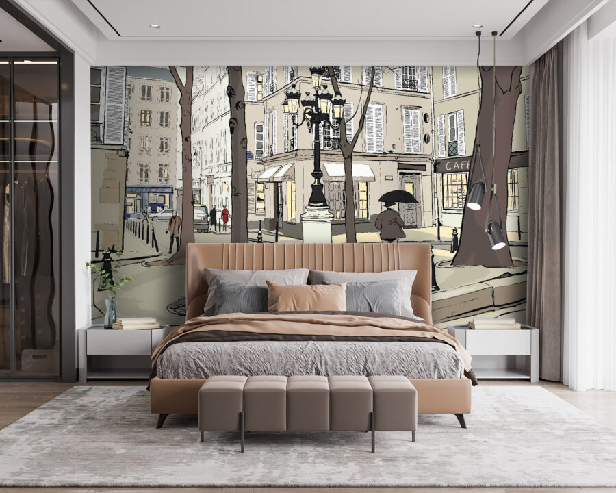 Trasformate una parete semplice in una scena vivace con questo stravagante murale che cattura l’essenza della vita cittadina. Immaginate di passeggiare in una strada affascinante, fiancheggiata da alberi alti e caffè caratteristici, dove ogni sguardo rivela qualcosa di delizioso. La morbida tavolozza di colori conferisce un’atmosfera accogliente, rendendolo perfetto per un salotto o uno spazio creativo. Immaginate il caffè del mattino con questo sfondo, o un’atmosfera giocosa nella stanza di un bambino. È come invitare una piccola fetta di città nella propria casa: bizzarra, commovente e piena di storie. È più di un semplice murale: è un’esperienza che aspetta di svilupparsi in ogni momento condiviso.