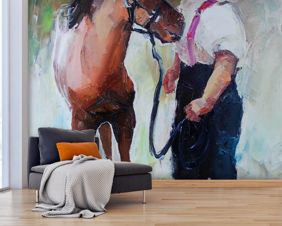 Vi presentiamo un murale che cattura la magia pura: una ragazza che scambia un dolce bacio con il suo cavallo. Quest’opera d’arte non è solo vernice su un muro, ma una finestra su un mondo in cui l’innocenza e l’amicizia fioriscono tra delicate pennellate. Immaginate di entrare in questo spazio e di sentirvi immediatamente sollevati, come un caldo abbraccio in una giornata fredda. I colori terrosi si fondono armoniosamente, suscitando un senso di pace e nostalgia. È perfetto per rallegrare una stanza dei giochi, aggiungere fascino a un angolo accogliente o suscitare gioia in qualsiasi stanza. Un delizioso promemoria che l’amore non conosce confini, nemmeno quelli tra le specie! Che siate amanti dei cavalli o semplicemente persone che apprezzano gli arredi unici, questo murale canta una dolce melodia che risuona nel cuore. Chi non vorrebbe crogiolarsi in quel tipo di calore ogni giorno?