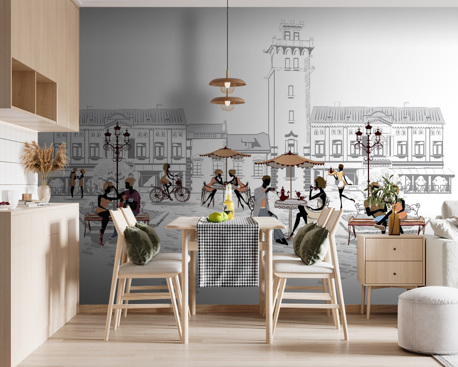 Immaginate questo: un’affascinante scena di strada che porta una piccola fetta di vita direttamente a casa vostra. Questo murale cattura una giornata di sole in cui un uomo e una donna siedono su un’accogliente panchina, circondati dal brusio di un vivace caffè. Immaginate il tintinnio delle tazze di caffè, le risate degli amici e il soffio di una leggera brezza. È perfetto per tutti coloro che amano l’atmosfera della vita di città o che vogliono semplicemente rifugiarsi in un momento caratteristico. Quest’opera non solo riscalda una stanza, ma invita anche a condividere storie e ricordi, dando vita a conversazioni come quelle che si svolgono nel murale. Un vero e proprio spunto di conversazione!