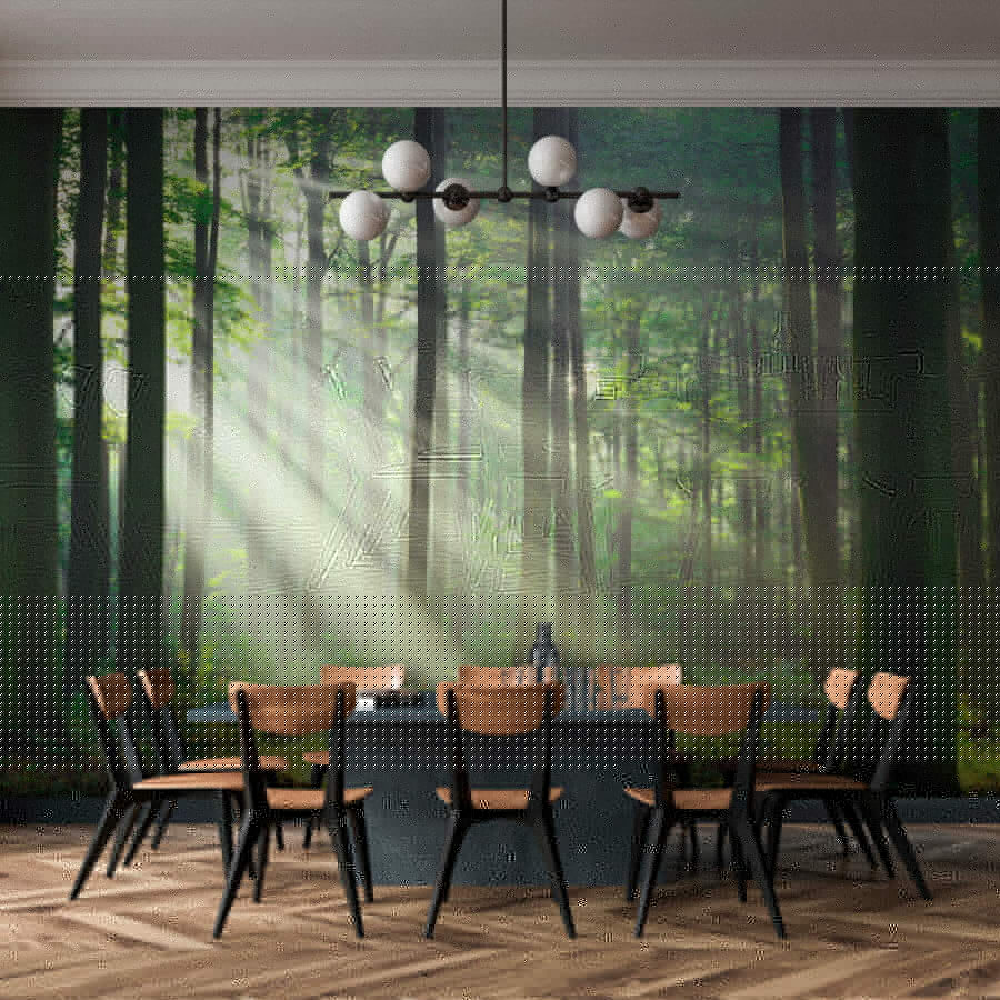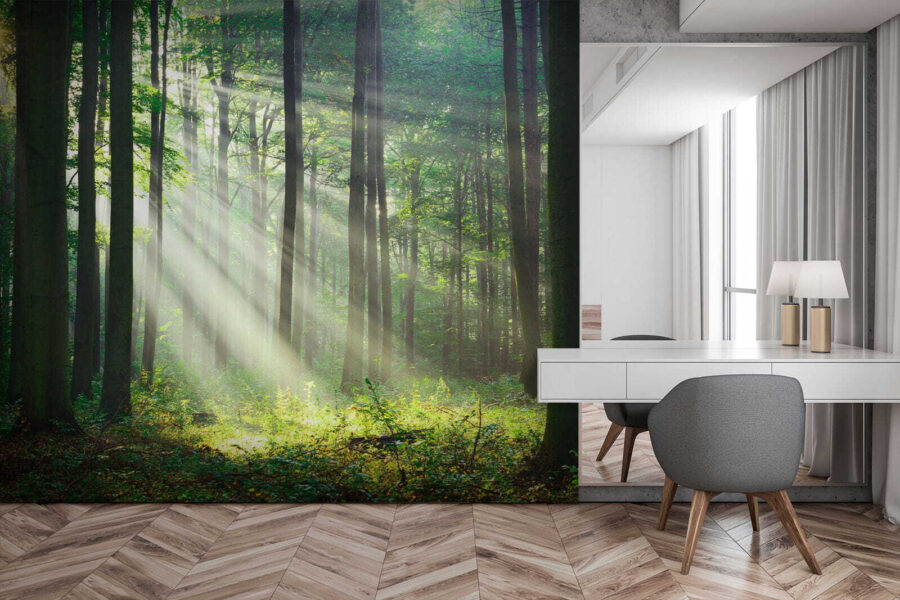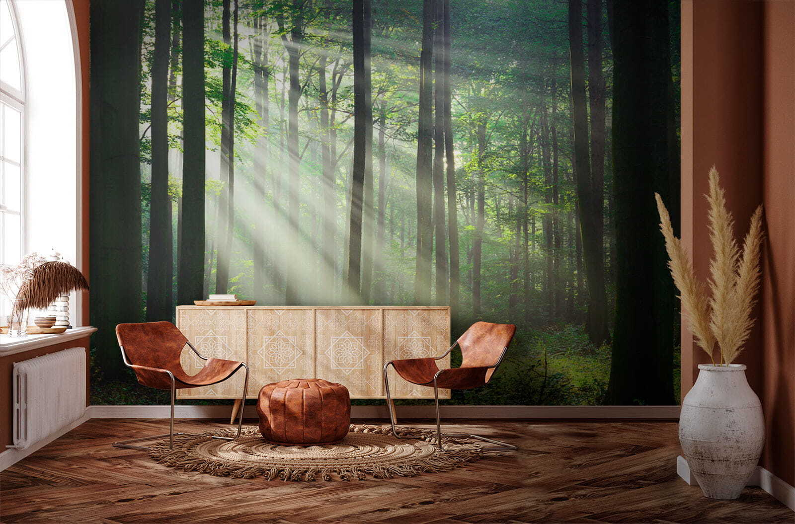 Avete mai pensato di camminare in una foresta illuminata dal sole proprio nel vostro salotto? Questo murale, “Raggi di sole che attraversano la foresta”, porta questa esperienza da sogno nel vostro spazio. Immaginate di avere quei dolci raggi di sole che filtrano attraverso alberi alti e maestosi: è come un sereno rifugio nella natura senza lasciare il vostro divano. Il verde lussureggiante e le calde travi aggiungono immediatamente un senso di calma e tranquillità. Perfetto per gli amanti della natura e per chiunque voglia portare un po’ di aria aperta all’interno. Sentirete praticamente il cinguettio degli uccelli! Ideale per creare un’atmosfera accogliente e invitante nella vostra casa. Gli ospiti rimarranno a bocca aperta. E forse, solo forse, vi sentirete un po’ più felici ogni volta che lo guarderete. Ideale per qualsiasi spazio che necessiti di un tocco di bellezza naturale.