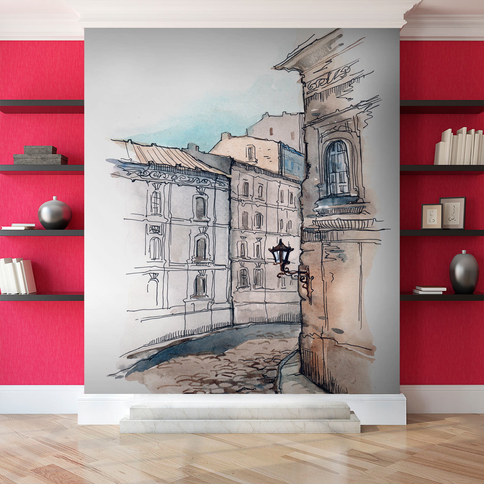 Questo murale è qualcosa di speciale, vero? “Disegno di un edificio” ha un fascino incantevole, come una tranquilla passeggiata in una pittoresca strada acciottolata di una vecchia città europea. Lo stile dell’acquerello aggiunge un tocco morbido e nostalgico, quasi come se la scena stessa sussurrasse dolcemente storie di altri tempi.