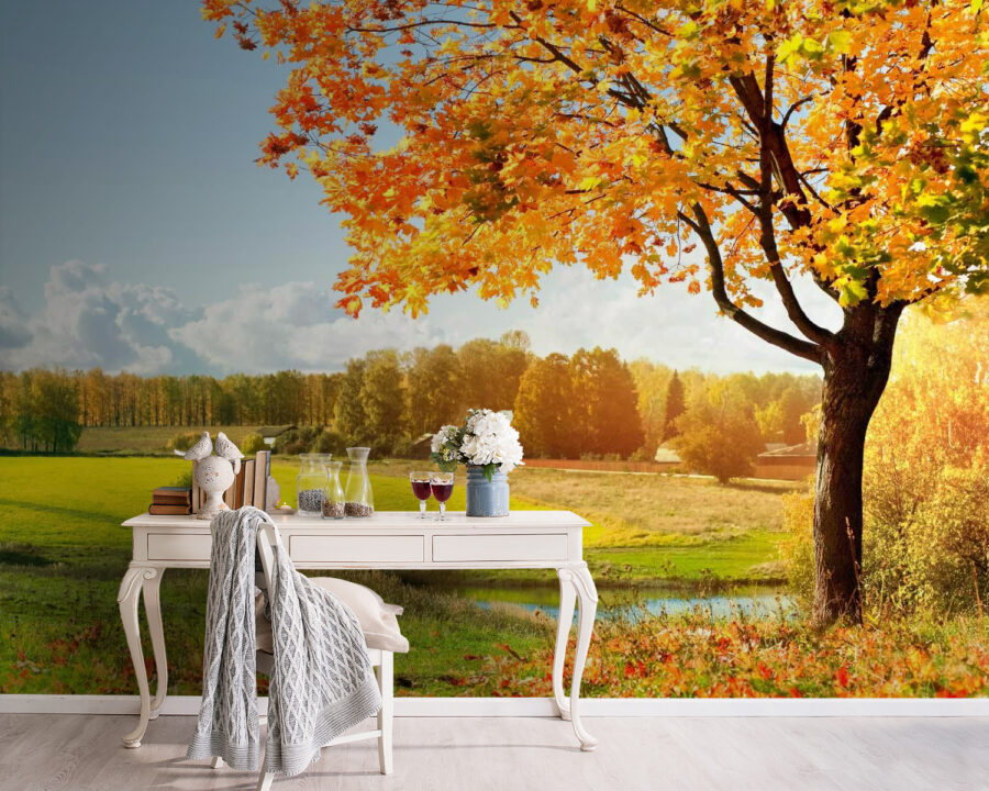 Immaginate di entrare in una stanza e di essere accolti dal bagliore vivace delle foglie arancioni contro un cielo blu soleggiato. Questo murale, “Albero con foglie arancioni in un campo”, fa proprio questo! È come una boccata d’aria fresca ogni giorno. Immagina piacevoli mattinate sorseggiando caffè, con lo sguardo che vaga su questo splendido quadro che cattura la bellezza della natura. Potrebbe ispirare sogni ad occhi aperti spontanei su pigri pomeriggi autunnali o picnic in famiglia. Perfetto per trasformare uno spazio noioso in qualcosa di vivace e accogliente. Inoltre, susciterà sicuramente conversazioni colorite: chi non ama parlare della natura? Dai spazio alle emozioni!