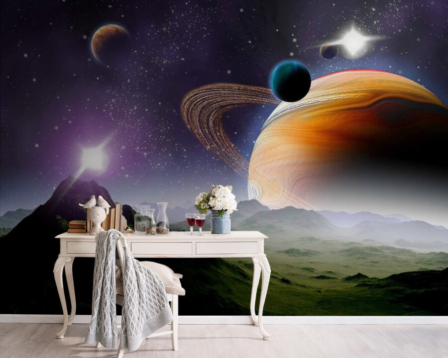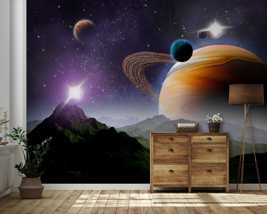 Trasformate il vostro spazio in una fuga cosmica con questo splendido murale che raffigura pianeti e stelle in un vasto universo. Immaginate di entrare in una galassia in cui i colori si scontrano in una danza di tonalità vibranti e delicati vortici. Questo murale non si limita a decorare le pareti, ma stimola l’immaginazione e la voglia di viaggiare. Immaginate di accoccolarvi con un libro, di perdervi in una storia mentre l’universo vi circonda. O forse ispira conversazioni profonde sulla vita, sui sogni e su ciò che c’è là fuori. Adatto a qualsiasi ambiente, è un perfetto spunto di conversazione: chi non vorrebbe parlare di avventure interstellari sorseggiando un caffè? Non è solo un murale: è una porta sul cosmo proprio a casa vostra!