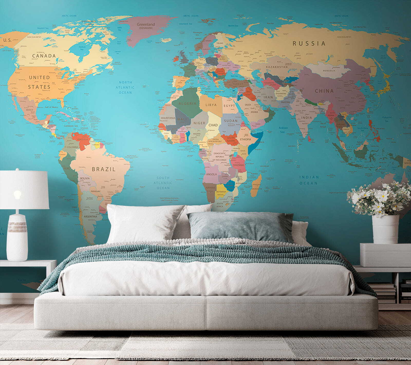 Quindi, perché non portare il mondo – o almeno una parte piuttosto grande di esso – nel vostro spazio con questo affascinante murale?