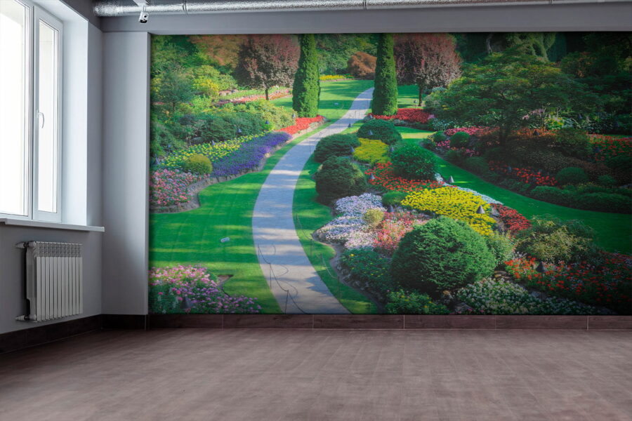 Transform your space into a vibrant escape with this stunning wall mural that captures a garden bursting with color. Imagine walking through a winding path flanked by blooming flowers and lush greenery—it’s like bringing the outdoors in! Perfect for brightening up a dull wall or creating a peaceful nook, this mural invites daydreams of sunny days and butterflies flitting about. Feel that calm wash over you as you sip your morning coffee while surrounded by nature’s beauty, minus the pesky bugs, of course. A touch of charm, a splash of joy—what’s not to love?