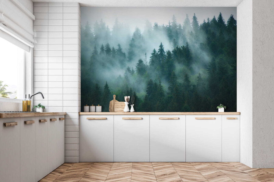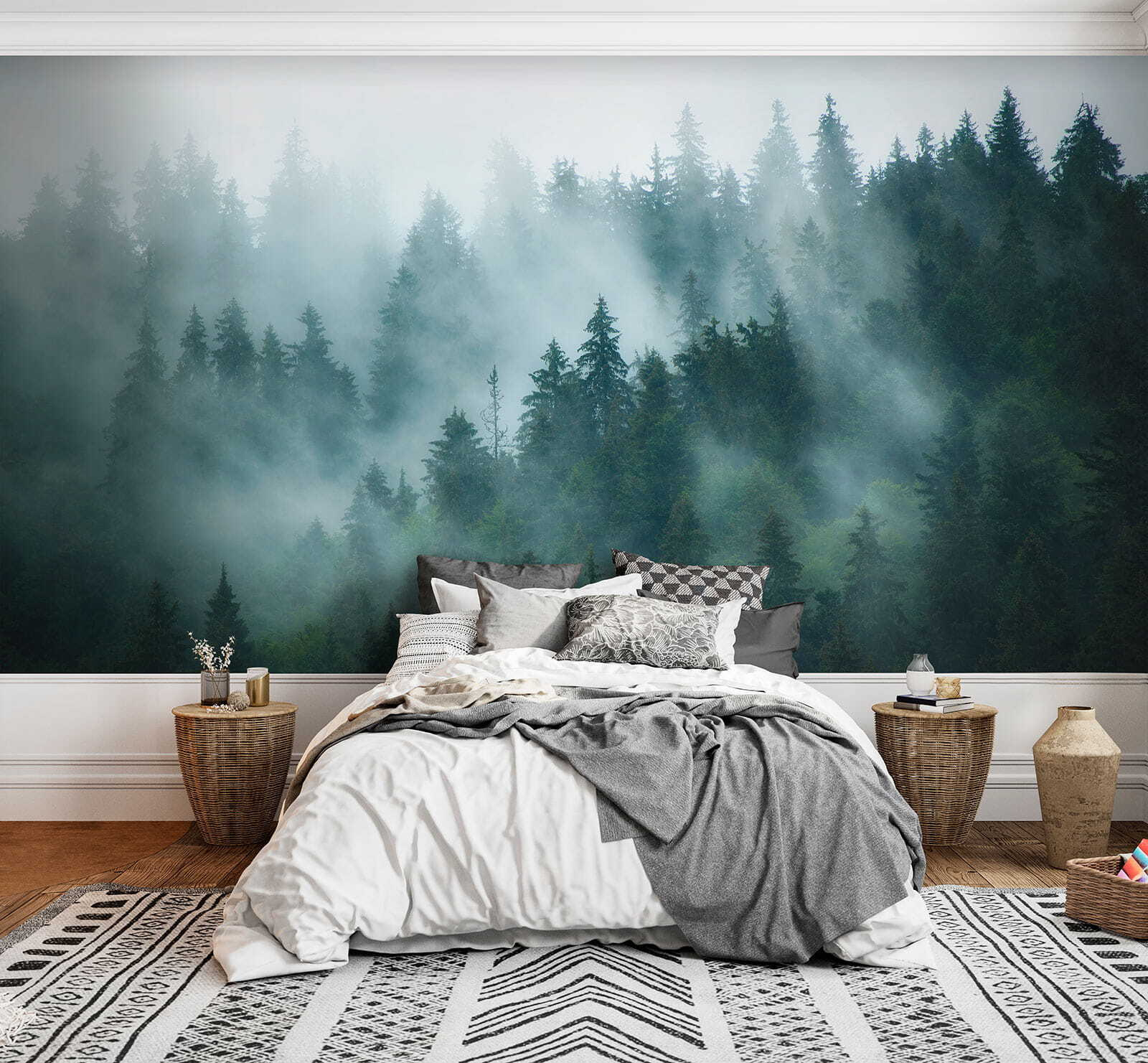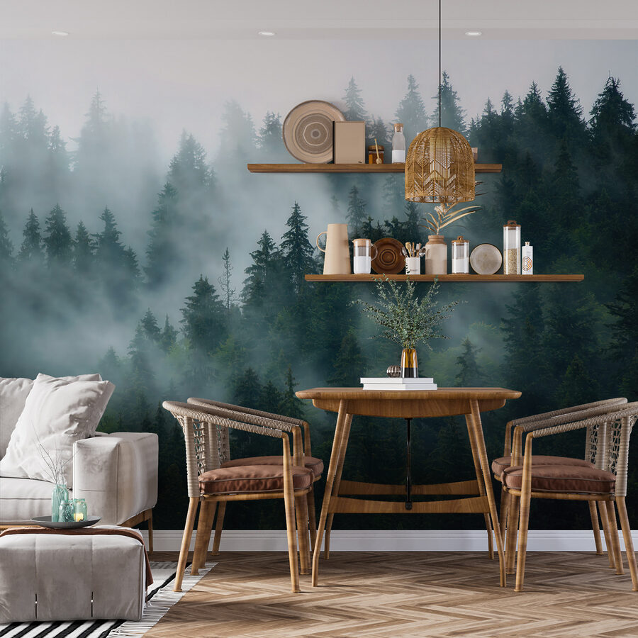 Immaginate di entrare in una stanza e di sentirvi come in una foresta mistica in una mattina di nebbia. È esattamente quello che fa questo murale “Gruppo di alberi nella nebbia”. Gli alberi sono avvolti da una nebbia soffice e nebbiosa che fa sembrare tutto un po’ più sognante. Ideale per chi ama la natura o ha bisogno di un po’ di calma nella sua vita frenetica.