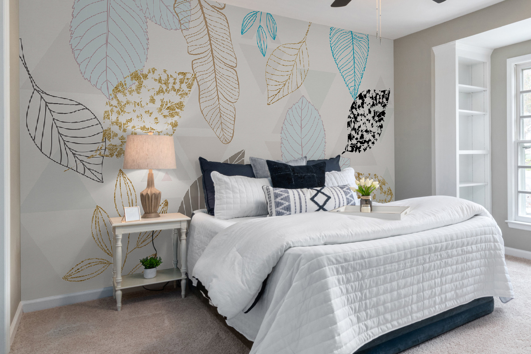 Guardate esattamente come apparirà il vostro spazio con la nuova carta da parati prima di acquistarla. Visualizzazione professionale da parte di designer esperti senza alcun costo o obbligo di acquisto.