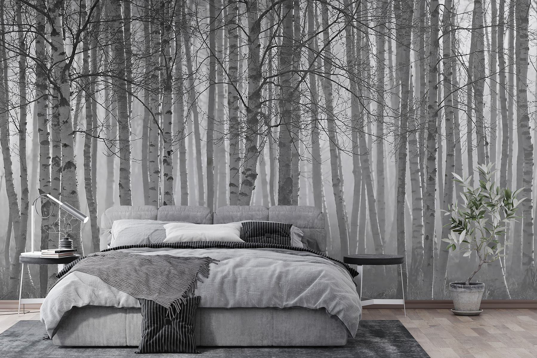 Avete mai desiderato portare un po’ di serena meraviglia del bosco nel vostro salotto? Immaginate questo: una leggera nebbia avvolge una mistica foresta di betulle imponenti, invitandovi a entrare in un mondo di calma e tranquillità senza nemmeno lasciare il vostro divano. Questo murale, “Gruppo di alberi in una foresta nebbiosa”, è come avere una fetta di tranquillità sulla parete. I toni del bianco e del nero aggiungono un tocco di eleganza, mentre i dettagli delicati lo fanno sembrare quasi vivo. Perfetto per chi ama le decorazioni uniche e per chi sogna una tranquilla passeggiata tra gli alberi, proprio a casa propria! E se avete un debole per le betulle, con questo quadro siete nel posto giusto. Immaginate di sorseggiare il vostro caffè mattutino sentendovi nel cuore di una foresta nebbiosa. Sembra magico, vero?