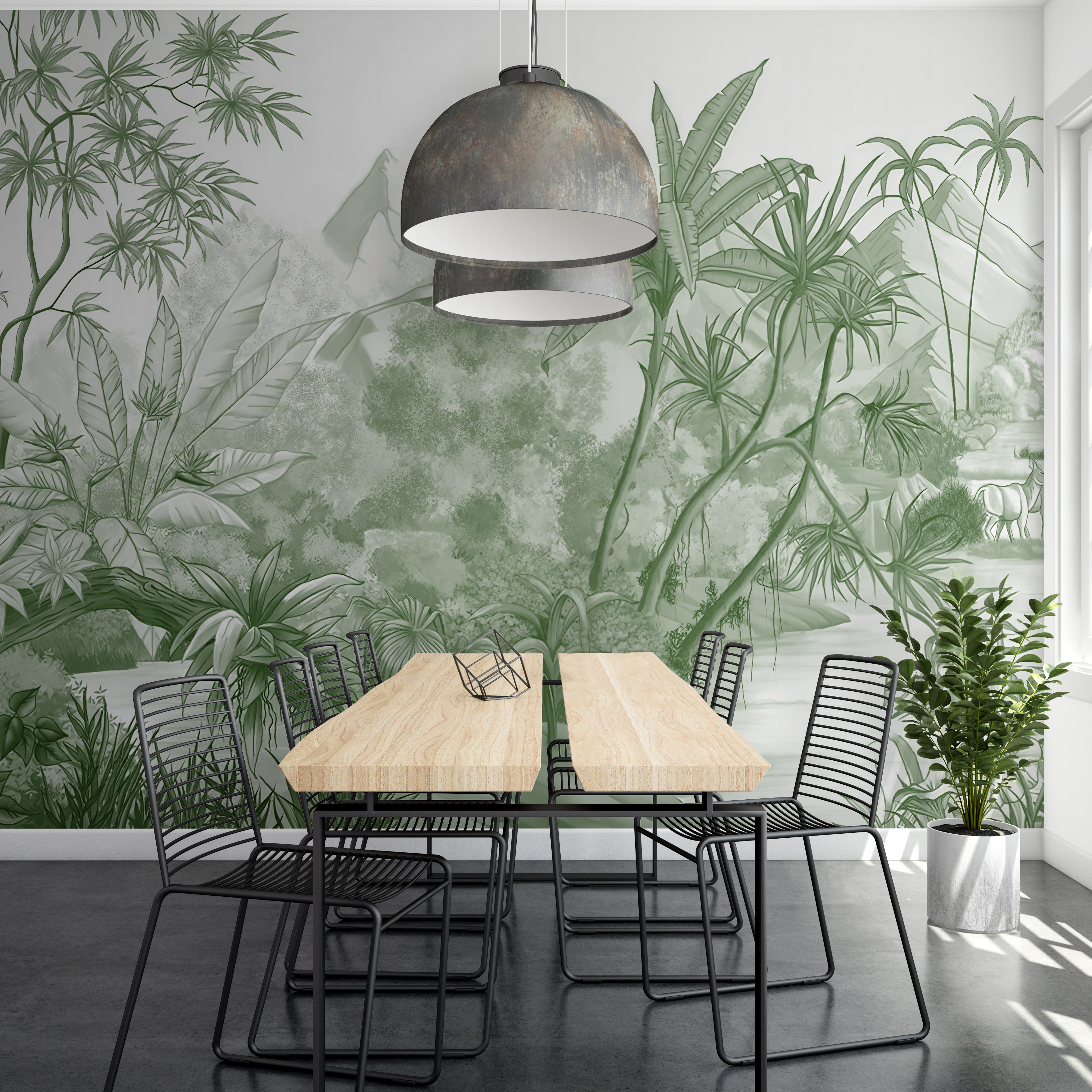 Avete mai sognato di fuggire nella giungla, ma senza le punture di zanzara e l’umidità? Questo murale “Jungle Landscape with Lush Vegetation” è il biglietto per la tranquillità, direttamente dal vostro salotto. Immaginate di sorseggiare un caffè e di immergervi in una scena ricca di verde esotico, come un abbraccio della natura. Le palme svettanti e il fitto fogliame trasformano istantaneamente qualsiasi parete spenta in un mini paradiso. Immaginate che gli ospiti entrino e facciano “wow!” come se fossero appena entrati in una foresta pluviale. È più di una semplice decorazione: è un toccasana immediato per l’umore! Sia che stiate sognando a occhi aperti o lavorando, questo murale crea un’atmosfera serena e vibrante che è difficile da battere. Perfetto per chi ama la natura ma non vuole occuparsi dei lavori della giungla. Tuffatevi, è un viaggio selvaggio (ma sereno)!