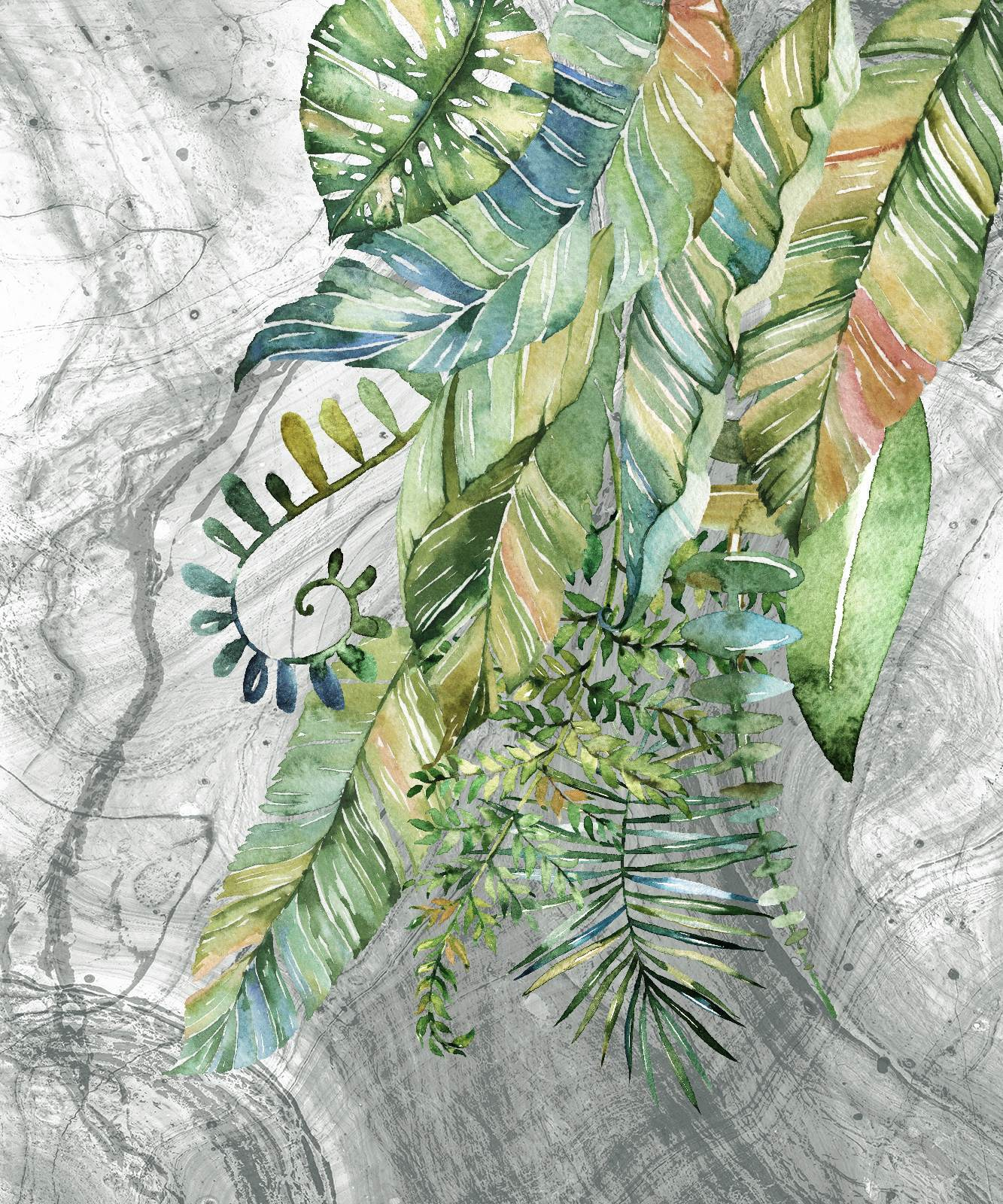 Transform your space with this stunning wall mural, “Leaves on a Marbled Surface.” Picture it: those vibrant greens dancing against a marbled backdrop, bringing a hint of nature right into your home. Imagine waking up and feeling like you’ve stepped into a cozy jungle, minus the mosquitoes, of course! Each leaf seems to whisper stories of calm and tranquility, while the soft marbling adds depth—perfect for a living room or even a chic home office.