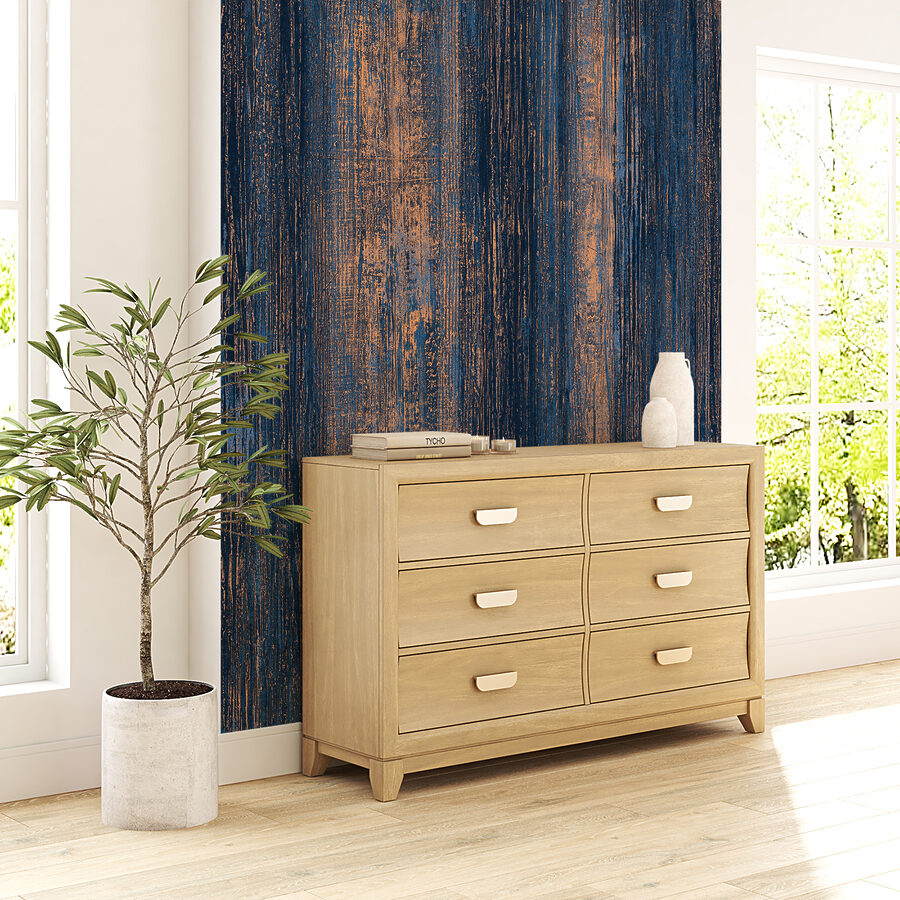 Immaginate di entrare in una stanza che sembra un’accogliente galleria d’arte, solo grazie a una parete. Questo murale, con i suoi toni blu intenso e bronzo caldo, aggiunge un tocco unico che rende invitante qualsiasi spazio. Pensate alle vibrazioni serene che trasmette, come un oceano calmo al tramonto, con un pizzico di fascino rustico. Perfetta per un salotto o un angolo lettura, può accendere conversazioni e ispirare la creatività. Gli amici si chiederanno dove avete trovato un tale gioiello. Inoltre, è facilissimo da cambiare quando si ha voglia di cambiare. Chi l’avrebbe mai detto che trasformare uno spazio potesse essere così divertente?