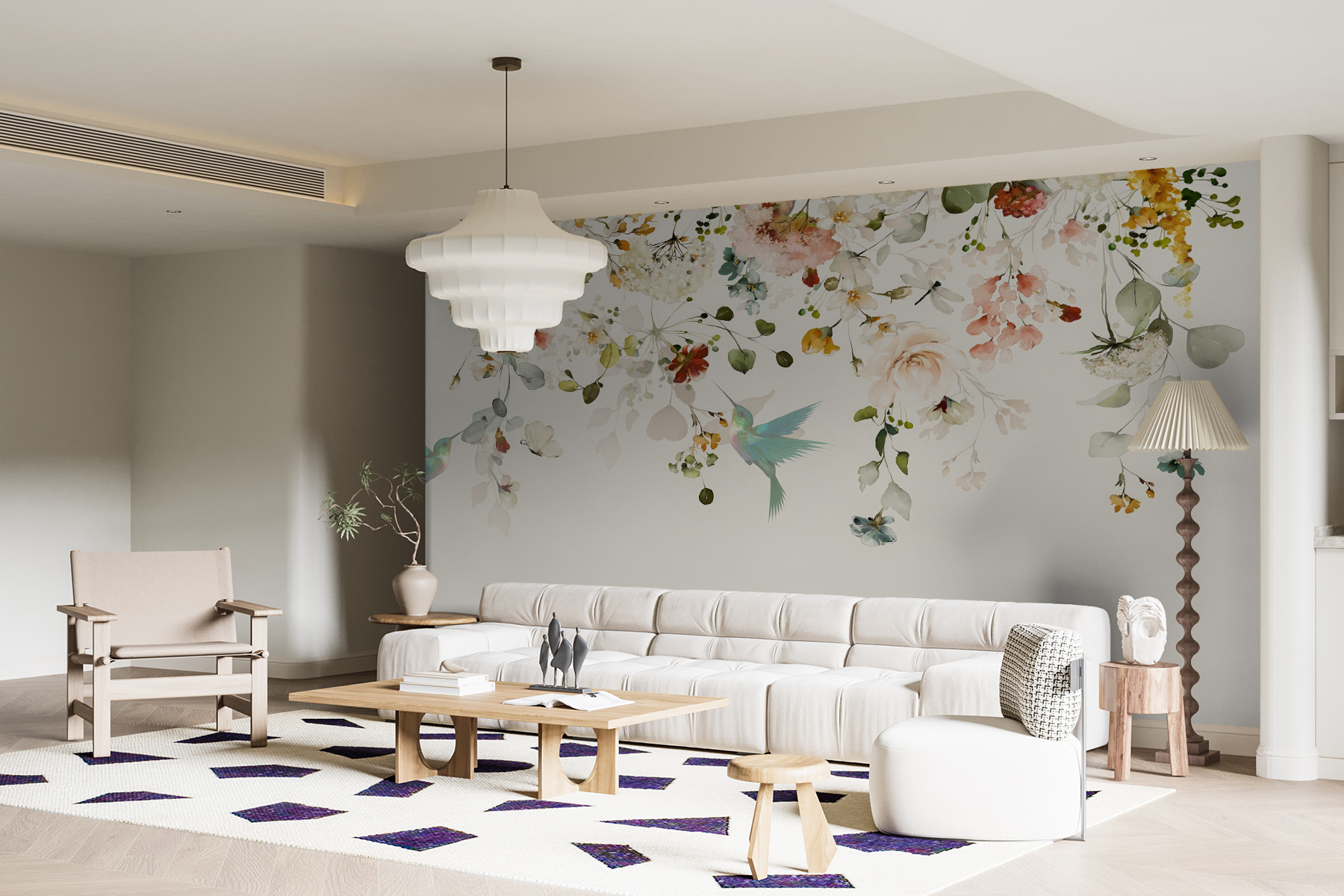 Questo murale ha una bellezza serena che è semplicemente… rilassante. Le tonalità pastello e i dettagli intricati? Trasmettono un’atmosfera accogliente e allo stesso tempo elegante. E poi quel colibrì: così carino e stravagante, vero? Sembra quasi di sentire il ronzio delle sue piccole ali. Che ci si accoccoli con un libro o si chiacchieri con gli amici, questo murale crea una scena meravigliosamente tranquilla.