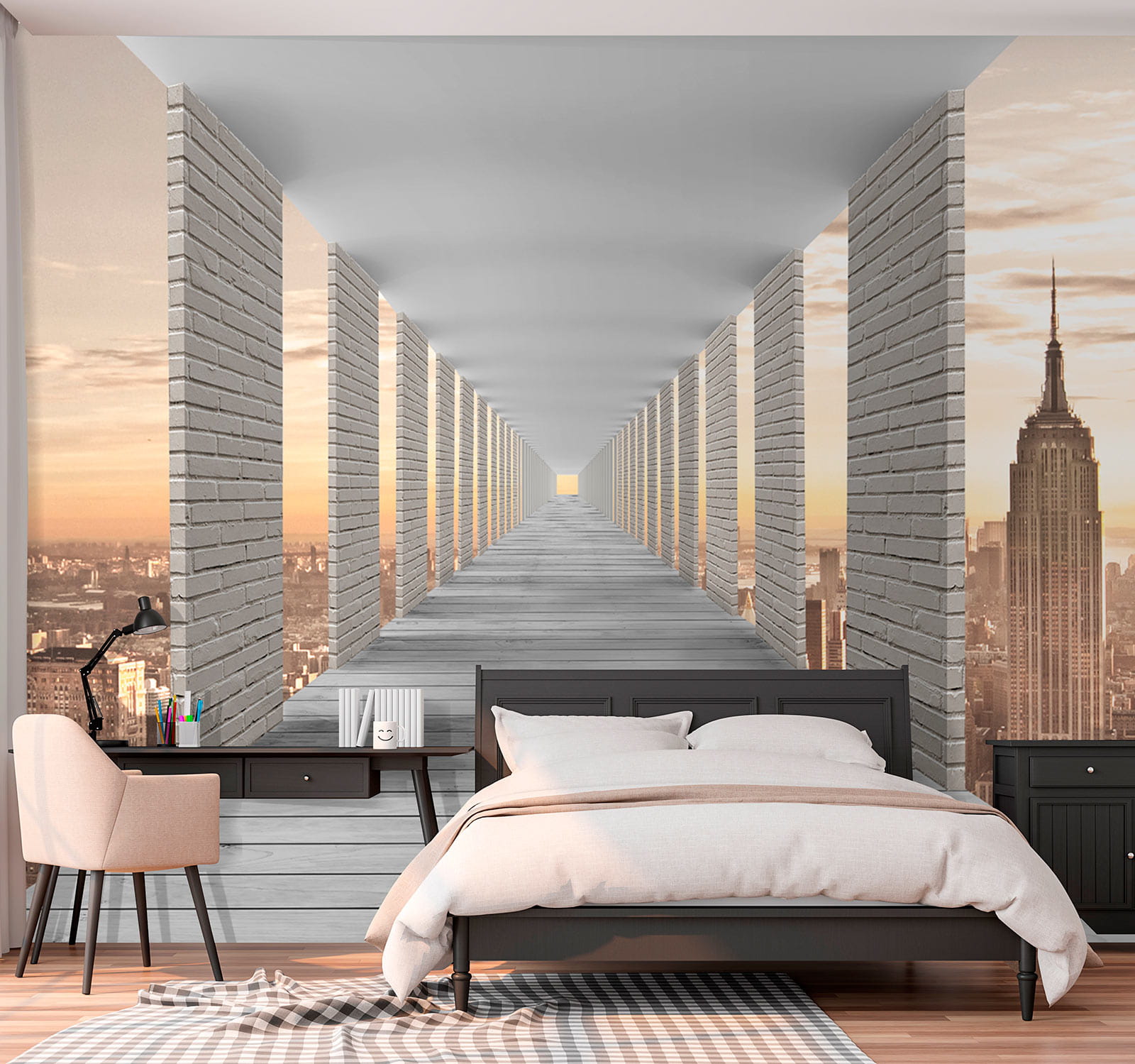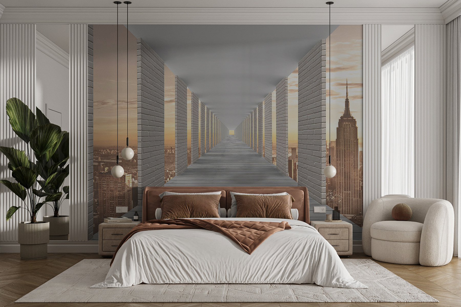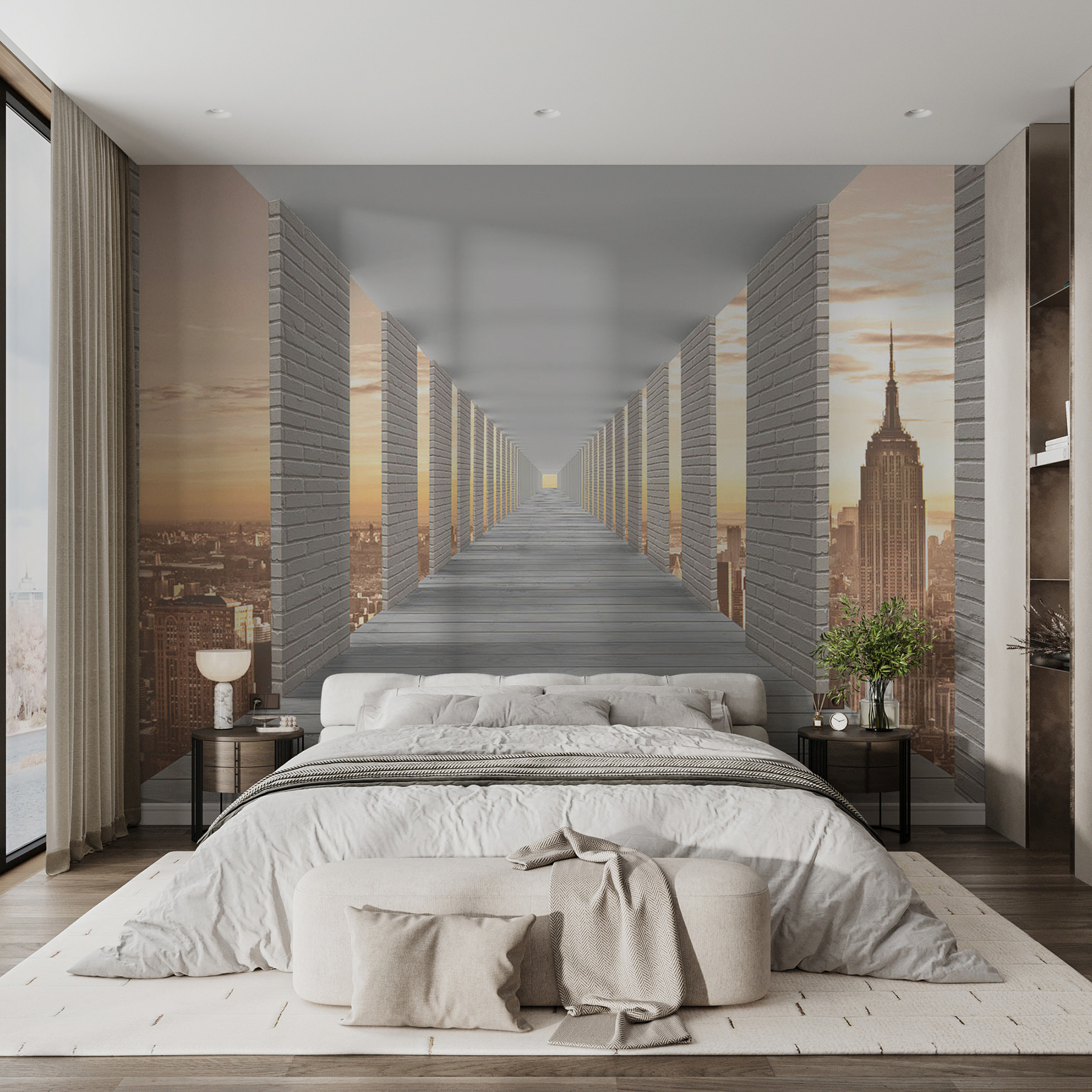 Immaginate di avere sulla vostra parete questo murale da sogno, dove un corridoio infinito conduce a un magico paesaggio urbano. Le linee fredde e decise dell’alto edificio e le infinite finestre conferiscono allo spazio un senso di profondità, quasi come se la stanza fosse cresciuta e avesse raggiunto un nuovo livello di raffinatezza. Le tonalità calde del tramonto fuori dalle “finestre” creano un’atmosfera accogliente e al tempo stesso ampia, perfetta per sognare a occhi aperti o per fingere di trovarsi in un loft urbano di lusso. È come se le vostre pareti avessero scoperto di poter fuggire senza lasciarvi indietro! Trasforma completamente una parete insipida in un argomento di conversazione. L’atmosfera di questo murale è così… city-chic, sapete? E chi non ne vorrebbe un pizzico nel proprio salotto o ufficio?