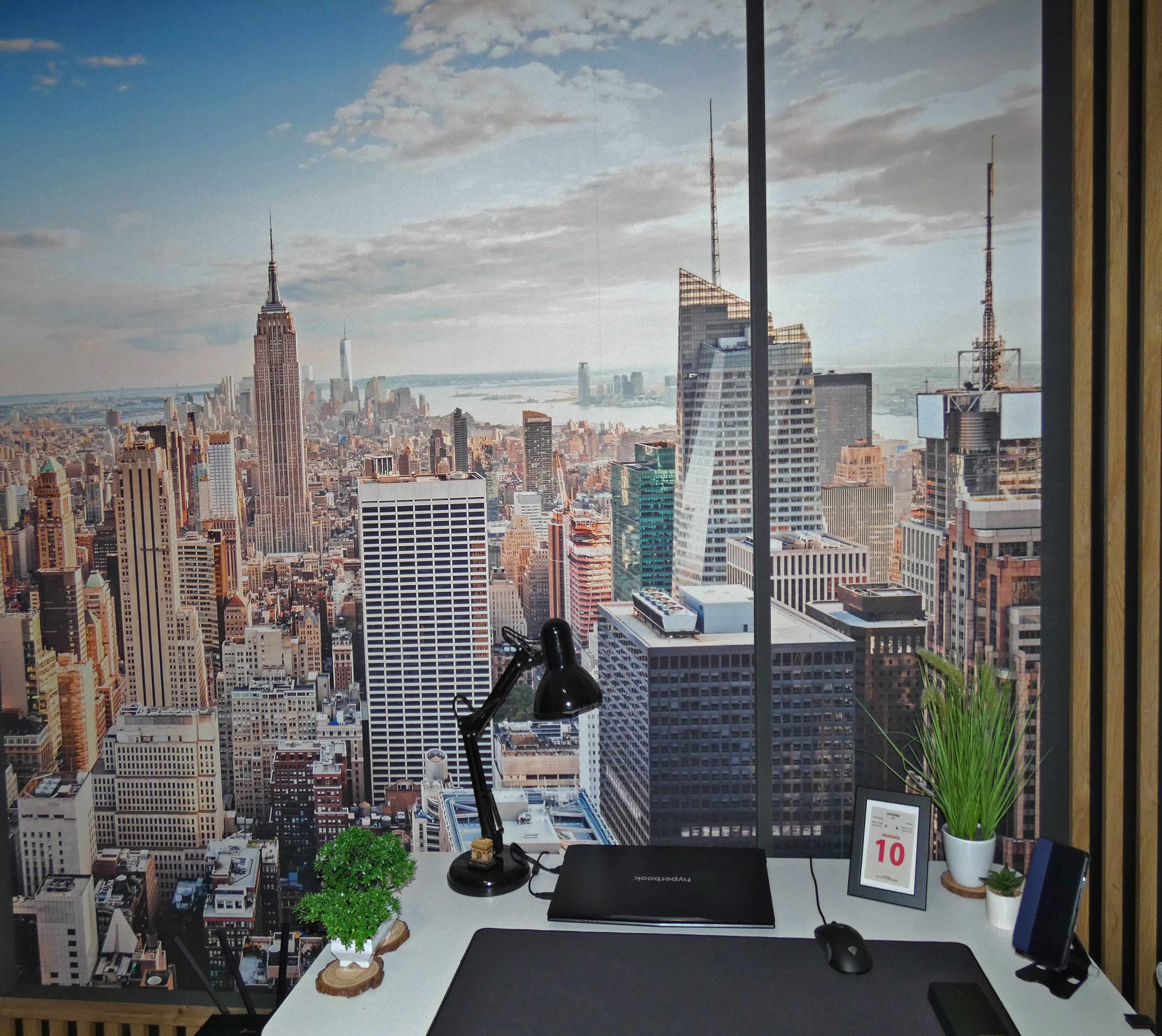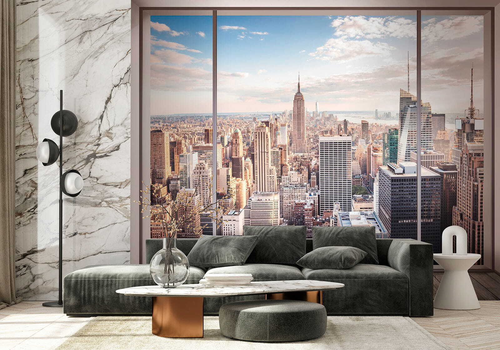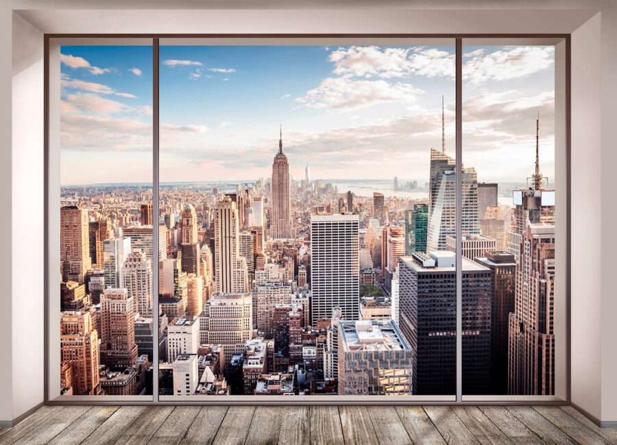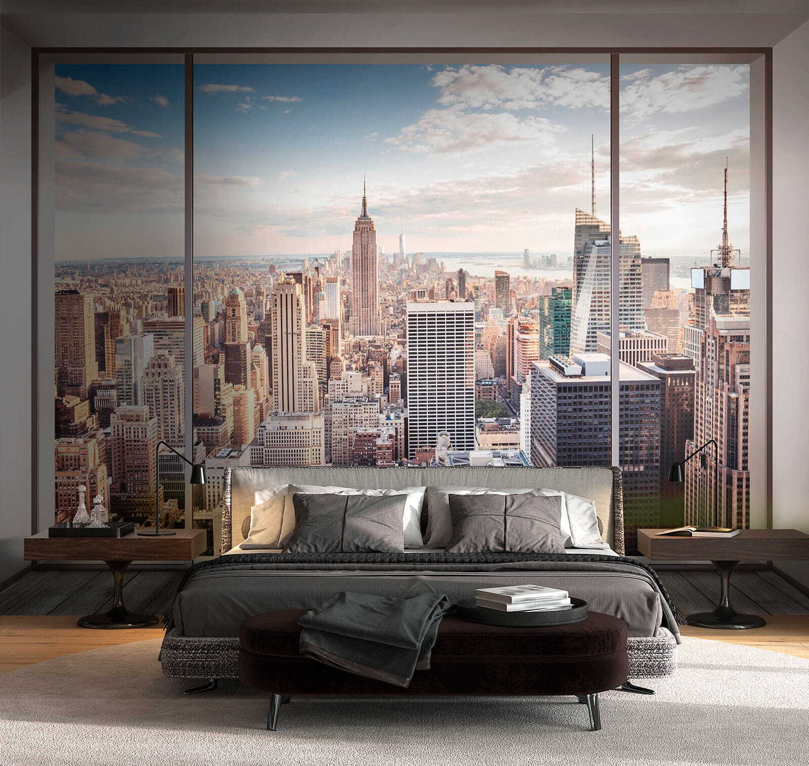 Immaginate di svegliarvi ogni giorno con uno skyline epico senza dover nemmeno uscire dalla vostra stanza! “Carta da parati Skyline view through large window” vi dà la sensazione di una grande città, senza il trambusto. Perfetto per chi sogna la vita di città o semplicemente ama una vista mozzafiato. È come avere un attico nel proprio salotto. In più, niente rumore!