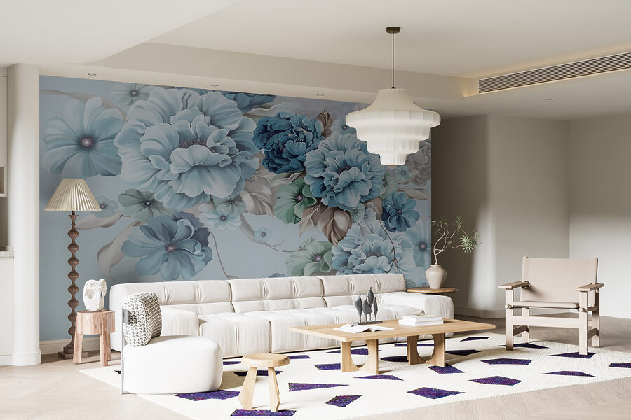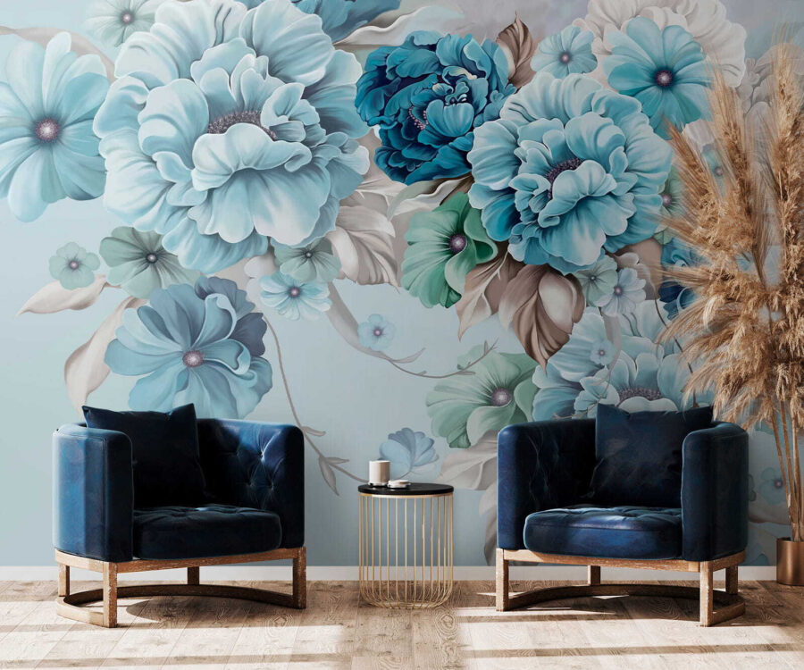 2 recensioni per Carta da parati Eleganti fiori di colore verde acqua in una morbida armonia