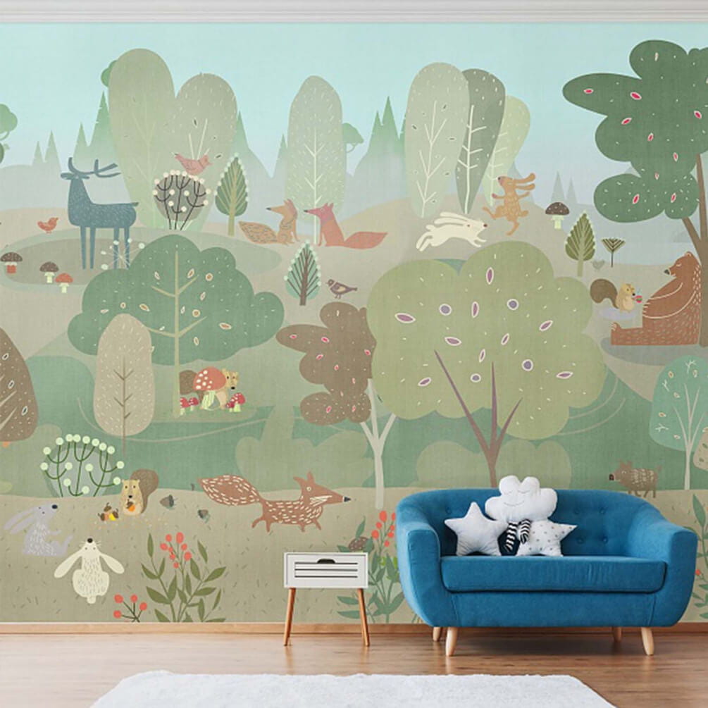Porta un po’ della magia del bosco direttamente a casa tua con questo delizioso murale “Cartoon of Animals in a Forest” (Animali del bosco in un cartone animato). Immagina coniglietti che saltellano e un simpatico orso che si rilassa tra gli alberi: è come una festa nel bosco sulla tua parete. Perfetto per la camera dei bambini, l’area giochi o qualsiasi spazio che necessiti di un tocco di fantasia naturale. I colori tenui e gli animali giocosi invitano al sorriso, creando una sensazione di pace e gioia. Chi non si sentirebbe sollevato guardando un piccolo cervo felice o una volpe sfacciata? È un argomento di conversazione e un stimolo per l’umore, tutto in un unico affascinante murale!