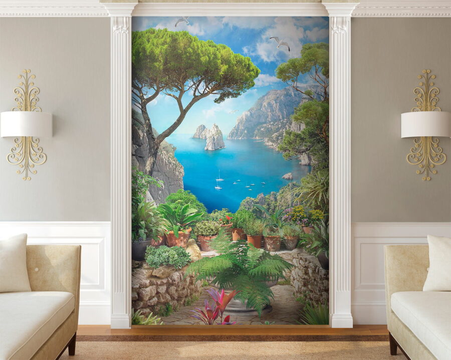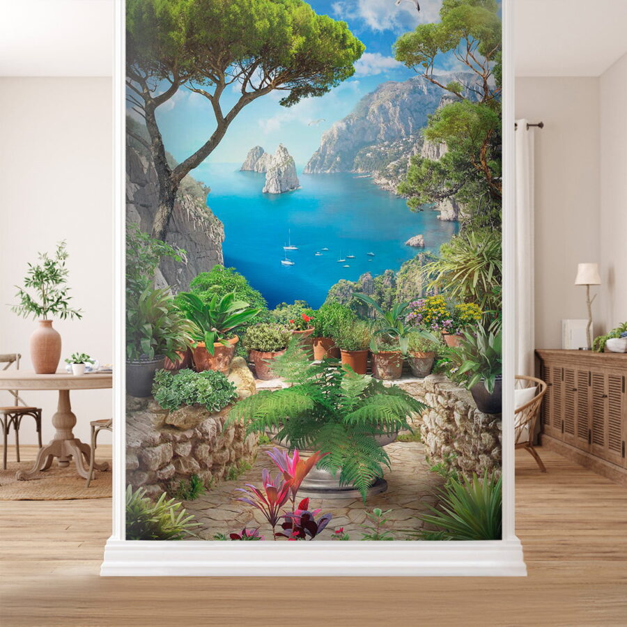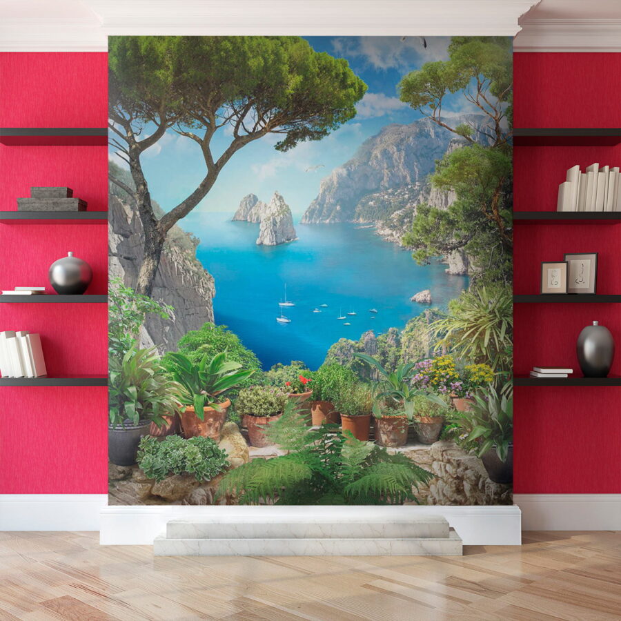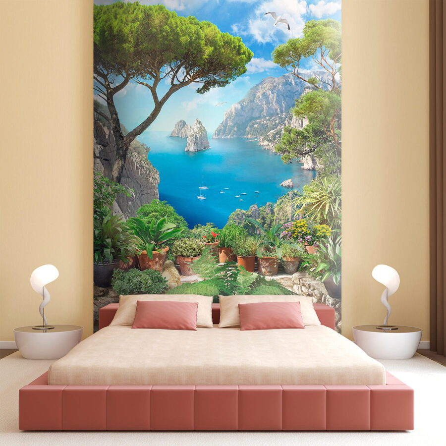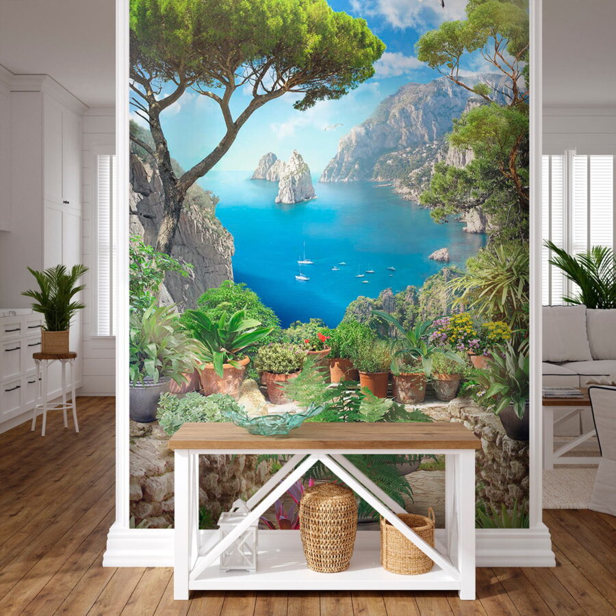 Trasforma una parete anonima in un rifugio mozzafiato con questo splendido murale, “Vista dell’oceano da una scogliera”. Immaginati mentre sorseggi un caffè immerso in vivaci tonalità di blu e verde intenso, come se stessi guardando il mare scintillante da una scogliera. Questo murale è come una mini vacanza ogni giorno! Cattura la bellezza della natura con affascinanti piante in vaso che aggiungono un tocco accogliente. Immagina il cinguettio degli uccelli e la brezza salata che soffia… ok, forse no, ma una ragazza può sognare, giusto? Perfetto per soggiorni o angoli accoglienti, questo pezzo invita a sognare ad occhi aperti spiagge serene e onde gentili.