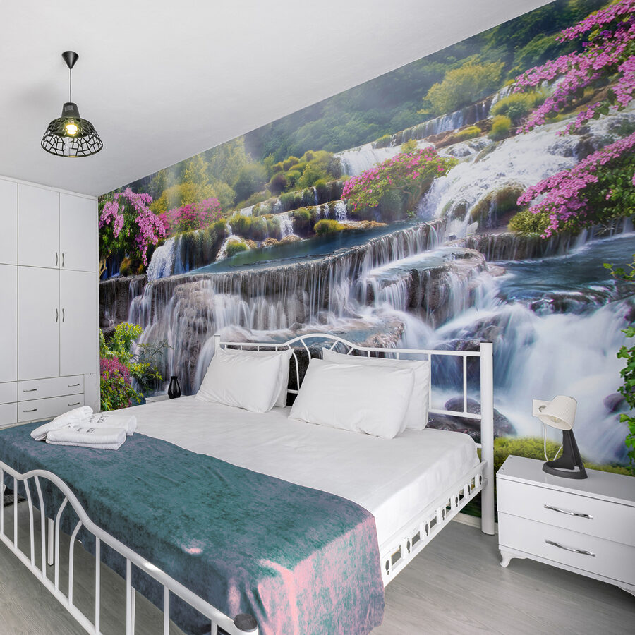 Trasformate qualsiasi stanza in un rifugio sereno con l’incantevole murale a cascata, circondato da vivaci fiori. Immaginate: una dolce cascata d’acqua scorre pacificamente, incorniciata da allegri fiori che sembrano danzare nella brezza. È come portare una fetta di natura in casa, senza le scarpe infangate! I colori rilassanti invitano al relax, rendendola perfetta per serate accoglienti o riunioni vivaci. Immaginate di rilassarvi dopo una lunga giornata, persi in questa scena tranquilla. Non è solo una parete, è una fuga rinfrescante che dà vita a qualsiasi spazio. Perché accontentarsi dell’ordinario quando le pareti possono raccontare una bella storia?