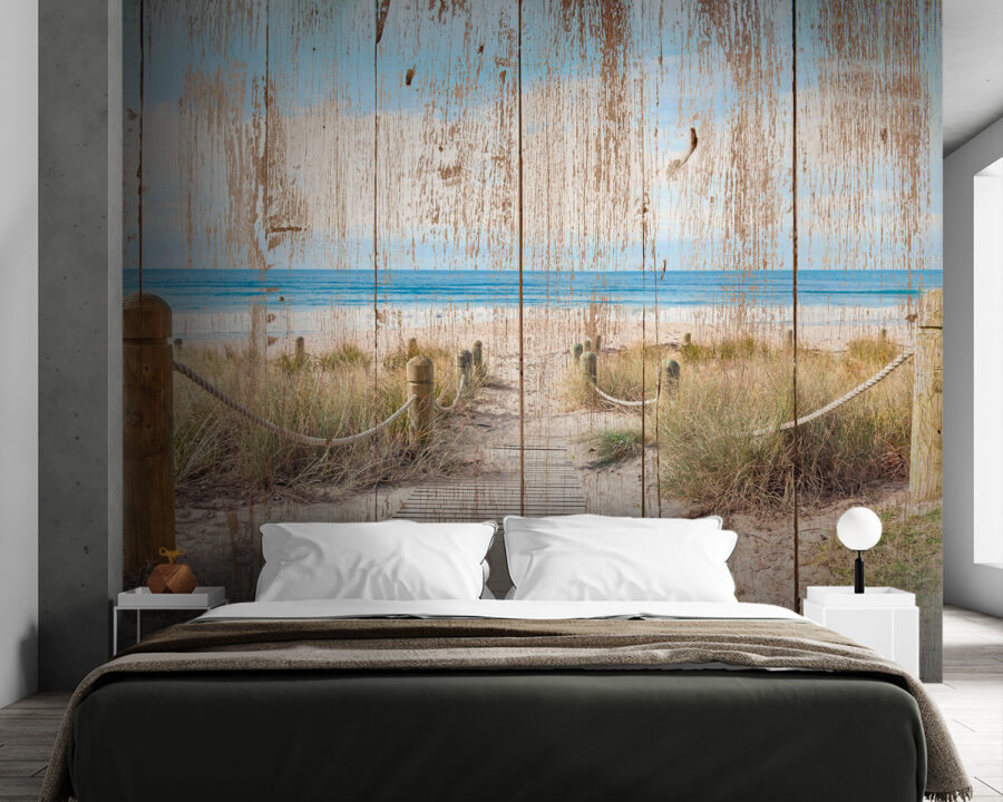 Immaginate di entrare in un accogliente cottage sulla spiaggia, anche se siete semplicemente a casa vostra. Questo murale, con quell’affascinante sentiero di legno che conduce direttamente all’oceano, sussurra storie di estati pigre e brezze salate. È come una mini vacanza ogni volta che lo guardate, non credete? Il legno consumato aggiunge un tocco di nostalgia, come se avesse visto innumerevoli tramonti. Immaginate di sorseggiare il vostro caffè mattutino mentre ammirate quelle onde gentili. Chissà, potrebbe ispirarti una gita improvvisata al mare! Perfetto per tutti gli amanti del mare che desiderano portare un po’ di calma, divertimento e un pizzico di avventura nel loro spazio.