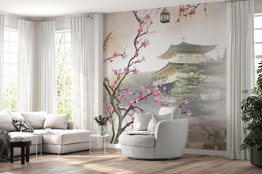 3 recensioni per Carta da parati Fiori che incorniciano un sereno tempio giapponese