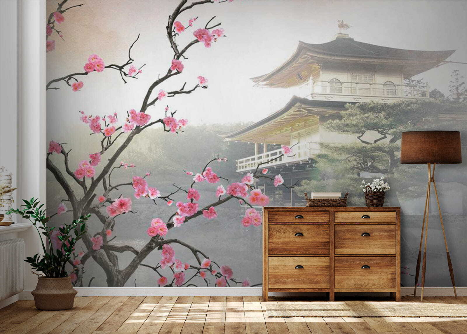 3 recensioni per Carta da parati Fiori che incorniciano un sereno tempio giapponese