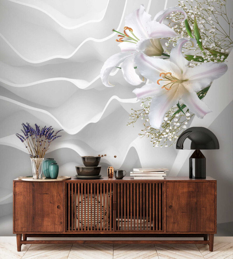 Il murales “Gigli su sfondo bianco ondulato” è una scelta da sogno per chiunque voglia ravvivare uno spazio con un tocco di eleganza e morbidezza! Immaginate di svegliarvi ogni giorno con questi delicati gigli, graziosamente incastonati su uno sfondo bianco ondulato: è come una dolce brezza di bellezza nella vostra stanza. L’effetto 3D aggiunge un fattore di meraviglia, dando l’illusione di profondità e movimento. Perfetto per una camera da letto o per un angolo accogliente dove sorseggiare il caffè del mattino. Dona un senso di calma e freschezza, quasi come se aveste portato in casa una fetta di giardino sereno. Inoltre, è abbastanza versatile da adattarsi a diversi stili di arredamento. Un modo delizioso per far parlare di stile le vostre pareti!