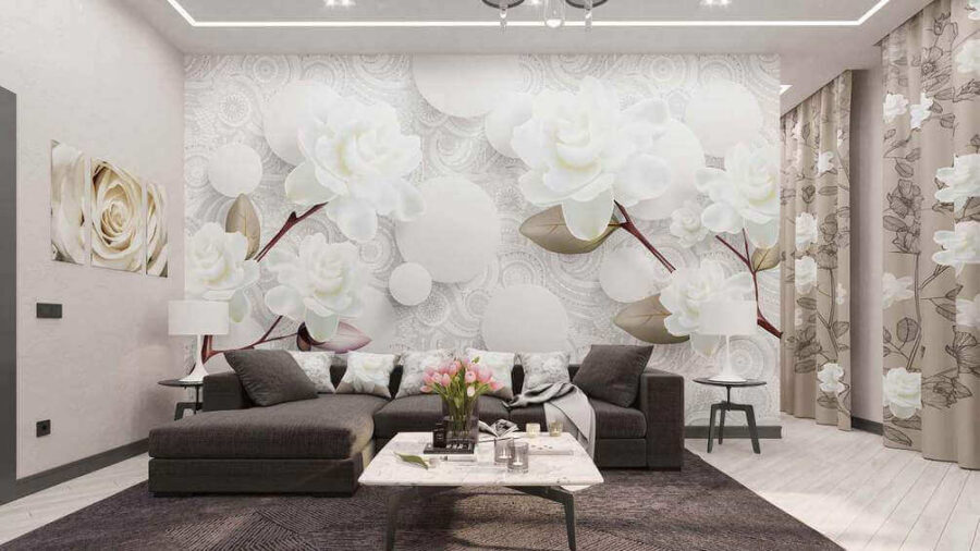 Trasforma qualsiasi stanza in un rifugio sereno con il “Wall Murals White Flowers and Circles on a White Background” (Murales con fiori bianchi e cerchi su sfondo bianco). Immagina di entrare nella tua stanza e di essere accolto da delicate rose bianche che danzano con grazia tra cerchi morbidi e delicati. È come portare un pezzo di giardino tranquillo all’interno, dove ogni sguardo è rinfrescante e rigenerante.