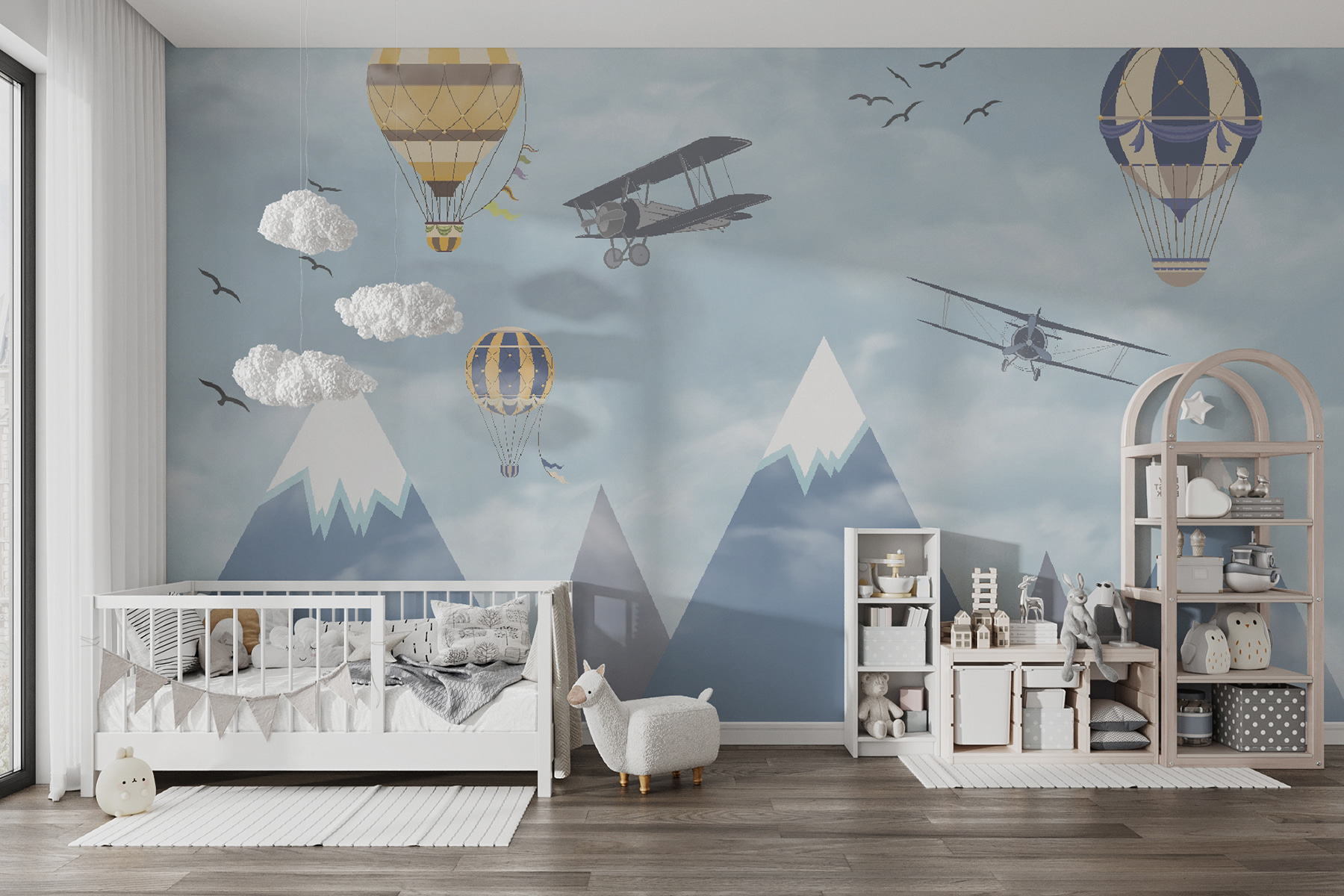 Immaginate di svegliarvi in un cielo pieno di stravaganti mongolfiere che fluttuano tra le nuvole, accanto ad avventurosi aeroplani che sfrecciano e uccelli che si librano in volo: è pura magia! Il murale “Hot Air Balloon in the Sky” porta un senso di meraviglia e avventura direttamente nella stanza. Perfetto per stimolare la creatività e i sogni negli spazi dei bambini, è come dare una tela alla loro immaginazione per scatenarsi. I blu pastello e le morbide nuvole sono così rilassanti da far sentire lo spazio leggero e arioso. Non si tratta solo di arredamento, ma di un viaggio nei cieli senza nemmeno uscire dalla stanza. Anche i genitori potrebbero provare una fitta di nostalgia, ricordando sogni di luoghi lontani e viaggi audaci. Chi non vorrebbe un po’ di tutto questo nella propria casa? E poi, quelle montagne innevate sullo sfondo? Semplicemente incantevoli. Questo murale è praticamente un sogno a occhi aperti sotto forma di arte murale: infinitamente affascinante e meravigliosamente sereno. I bambini lo adoreranno, così come il bambino che è in voi.
