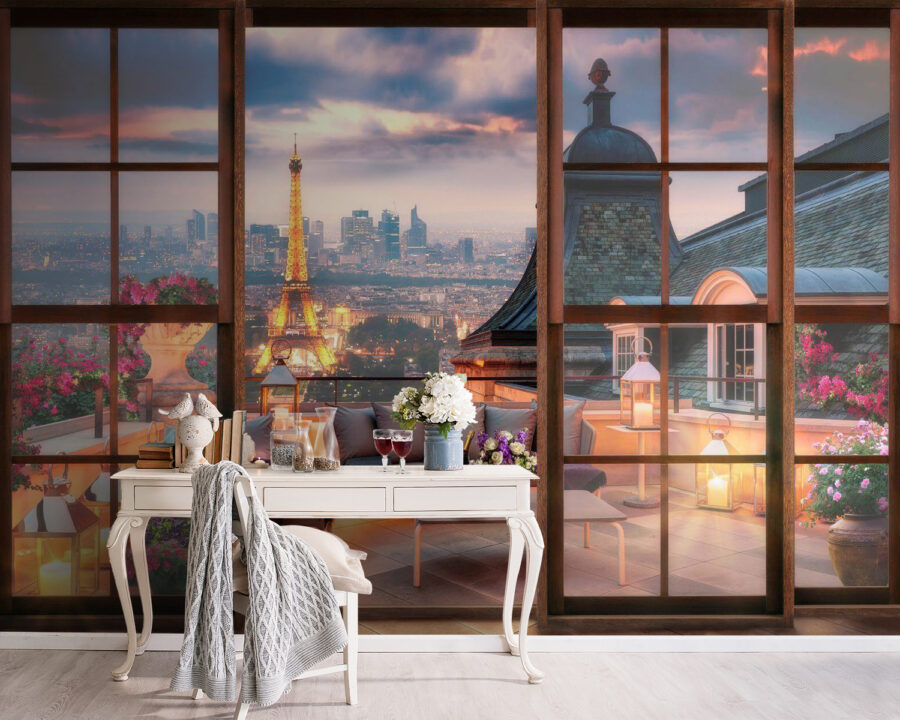 Immaginate di essere appena entrati in un accogliente angolo di Parigi: è proprio così che si presenta questo murale. “Bottiglia di vino in un secchiello di ghiaccio” e voilà, vibrazioni chic istantanee. Perfetto per aggiungere un po’ di je ne sais quoi al vostro salotto o alla vostra zona pranzo, questo murale non si limita a decorare, ma vi trasporta. Immaginate questo: Invece di pareti semplici, avete la vista del paesaggio urbano di una terrazza parigina. Vino sul tavolo, morbidi cuscini ovunque, fiori che aggiungono un tocco di colore: il tutto incorniciato magnificamente dalle vostre “finestre”. Sembra quasi di sentire il ronzio lontano della città sotto il bagliore della Torre Eiffel. Una piccola fetta di eleganza europea, proprio a casa vostra. Perfetta per i sognatori e gli appassionati di arredamento, aggiunge calore, fascino e un pizzico di romanticismo. Del resto, chi ha bisogno di un biglietto aereo?