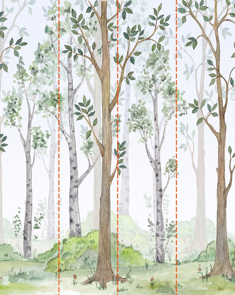 La carta da parati verrà preparata in base alle dimensioni fornite durante il processo d’ordine. La tela sarà suddivisa in comode sezioni, ciascuna larga fino a 50 cm.