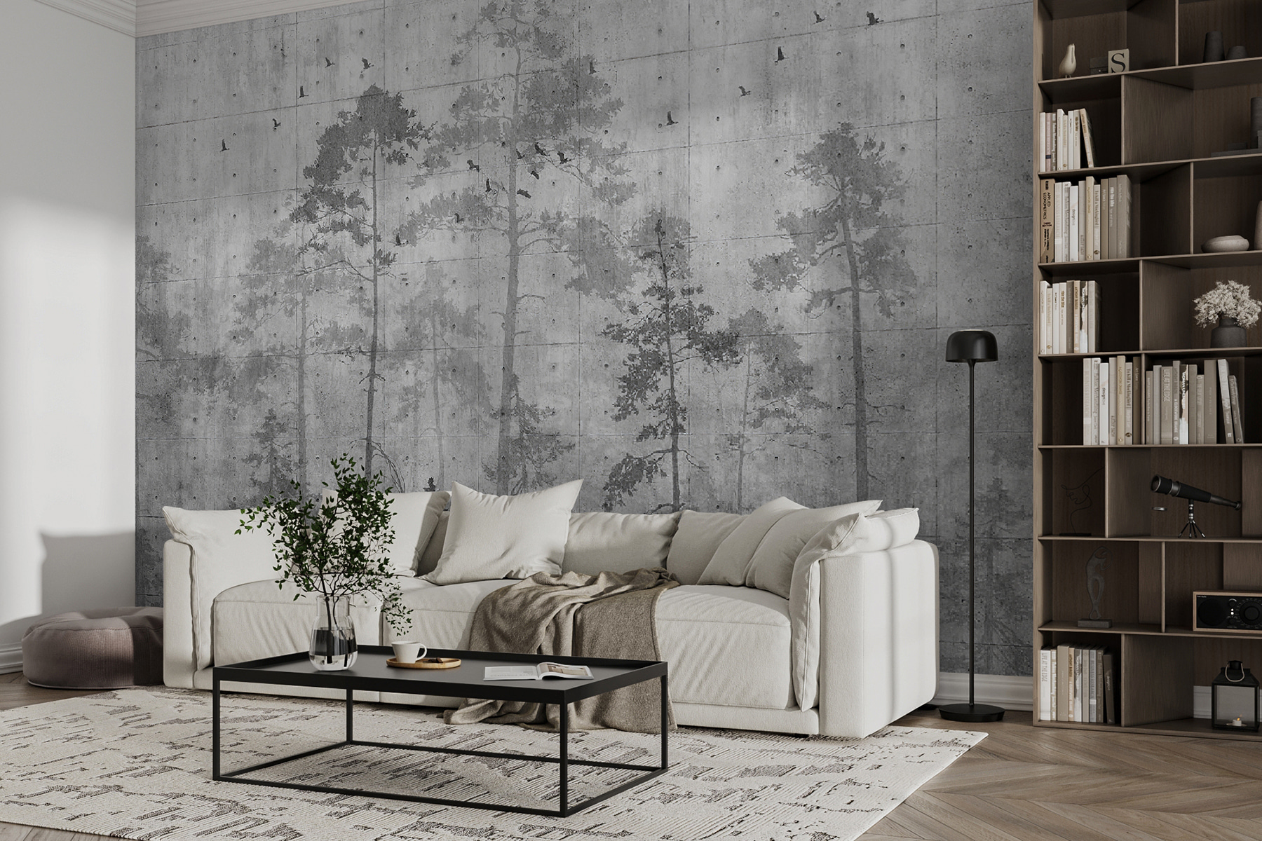 Avete mai desiderato un tocco di natura senza doverne curare la manutenzione? Questo murale “Tree Shadow on a Concrete Wall” porta la calma di una foresta direttamente nel vostro spazio. Pensate a una serena passeggiata nel bosco, senza il repellente per insetti. Gli alberi morbidi e ombrosi sullo sfondo di cemento hanno un effetto quasi acquerello, come una mattina nebbiosa e sognante catturata solo per voi.
