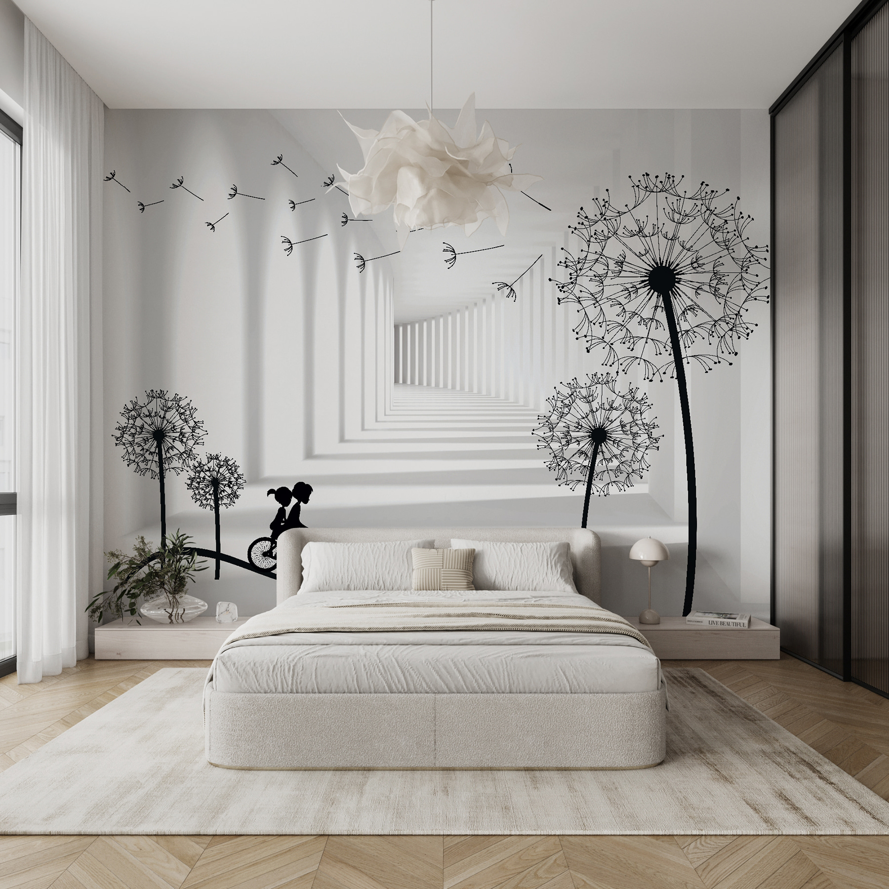 Trasformate il vostro spazio con questo stravagante murale che raffigura un bambino e una bambina che vanno in bicicletta in un paesaggio sognante di denti di leone. Le sagome giocose invitano a un senso di libertà e avventura, suscitando ricordi di giorni d’infanzia spensierati e di corse al sole. Immaginate di svegliarvi ogni mattina, piacevolmente sorpresi da questa scena gioiosa che aggiunge un tocco di fascino alle vostre pareti. È come portare una fetta di nostalgia nella vostra casa. Perfetto per il soggiorno, la stanza dei giochi o anche per il piccolo angolo di lettura, questo murale non è solo una decorazione, è un viaggio incantevole che aspetta di essere compiuto!