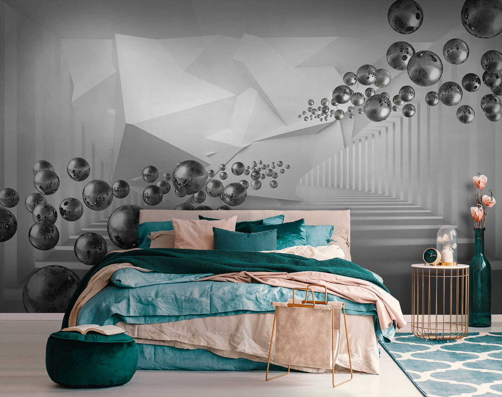 Entrate in un parco giochi visivo con il murale “Floating Spheres in Geometric Corridor”, dove la creatività è al centro della scena. Immaginate di camminare in un regno onirico di sfere stravaganti e angoli acuti, creando una deliziosa danza di profondità e intrigo. È come trovarsi in un labirinto dove ogni svolta porta una nuova sorpresa. L’atmosfera elegante e moderna si adatta perfettamente a qualsiasi spazio, stimolando l’ispirazione sia in un accogliente ufficio domestico che in un vivace salotto. Gli amici sbirceranno curiosi, chiedendo quale magia stia accadendo sulle vostre pareti. Non è solo arredamento, è un’esperienza!
