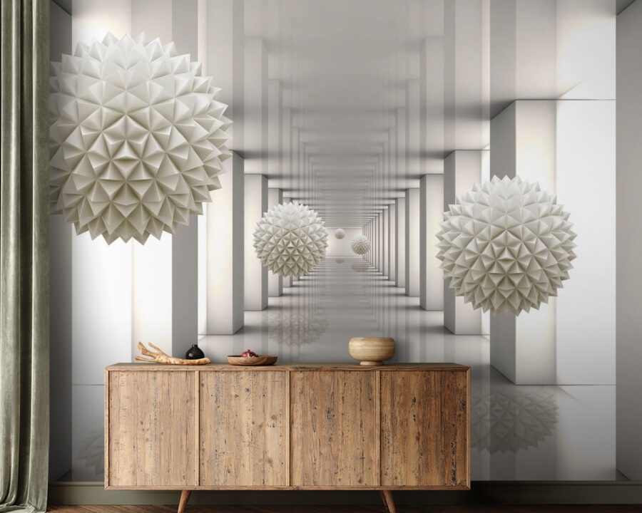 Immaginate di entrare in un mondo in cui arte e geometria si incontrano. Ecco cosa fa questo murale “White Sphere with Triangles”: trasforma la vostra stanza in una galleria chic. Le forme 3D spuntano fuori come se fossero pronte ad accogliervi, stimolando conversazioni e magari ispirando qualche sogno ad occhi aperti. Perfetto per chi è stanco di pareti noiose e vuole un tocco di modernità artistica. È come dare al vostro spazio un mini-rifacimento senza sollevare un solo martello: solo pura delizia visiva! Inoltre, aggiunge un’atmosfera sofisticata senza essere troppo appariscente. Ideale per rendere la vostra stanza degna di Instagram!