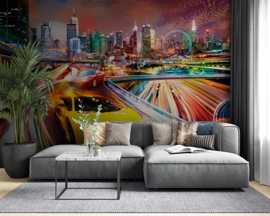 Avete mai sognato di sfrecciare per le strade della città a bordo di una stupefacente auto sportiva rossa? Questo murale cattura totalmente quell’emozione! Immaginate di entrare nel vostro salotto o nella caverna dell’uomo e di sentire quella scarica di adrenalina a ogni sguardo. Le luci vivaci della città e il design elegante dell’auto vi faranno sentire come se foste proprio sulla corsia di sorpasso, senza le multe per eccesso di velocità. Perfetto per gli appassionati di auto o per chiunque ami un po’ di avventura urbana. È più di un semplice murale: è una fetta di eccitazione ad alta velocità direttamente sulla vostra parete. Trasforma il vostro spazio in un centro di energia e stile: è come portare la corsa a casa vostra!