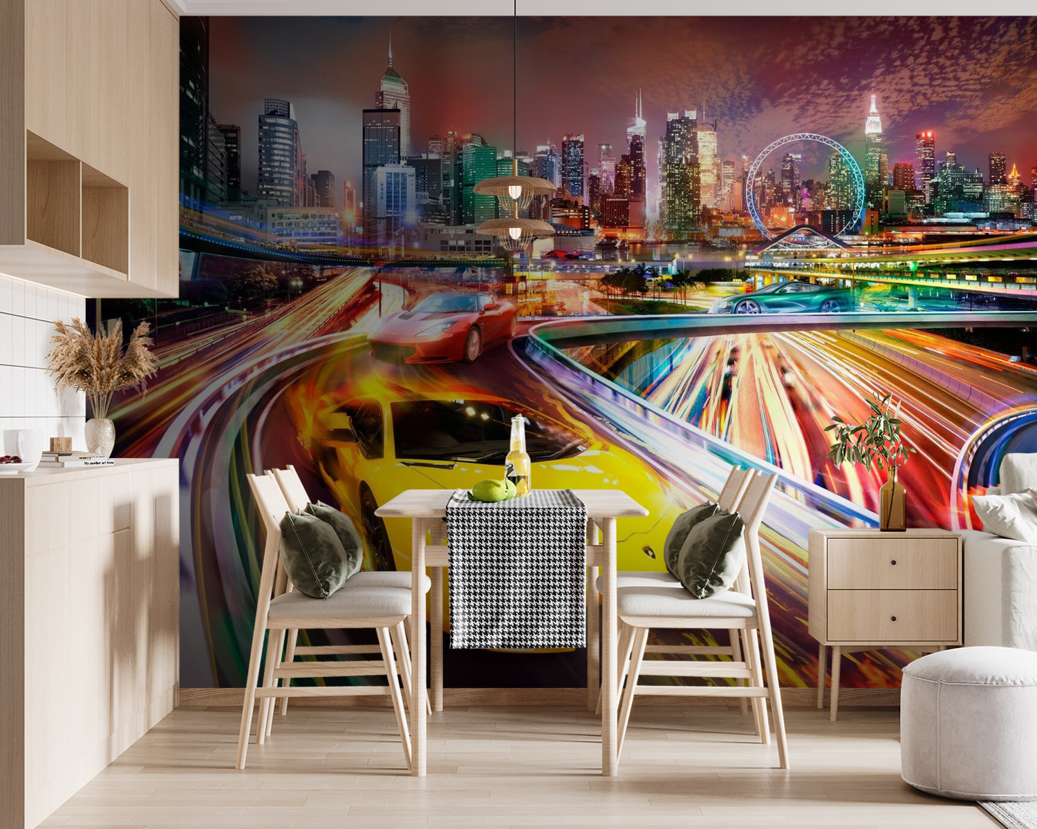 Avete mai sognato di sfrecciare per le strade della città a bordo di una stupefacente auto sportiva rossa? Questo murale cattura totalmente quell’emozione! Immaginate di entrare nel vostro salotto o nella caverna dell’uomo e di sentire quella scarica di adrenalina a ogni sguardo. Le luci vivaci della città e il design elegante dell’auto vi faranno sentire come se foste proprio sulla corsia di sorpasso, senza le multe per eccesso di velocità. Perfetto per gli appassionati di auto o per chiunque ami un po’ di avventura urbana. È più di un semplice murale: è una fetta di eccitazione ad alta velocità direttamente sulla vostra parete. Trasforma il vostro spazio in un centro di energia e stile: è come portare la corsa a casa vostra!