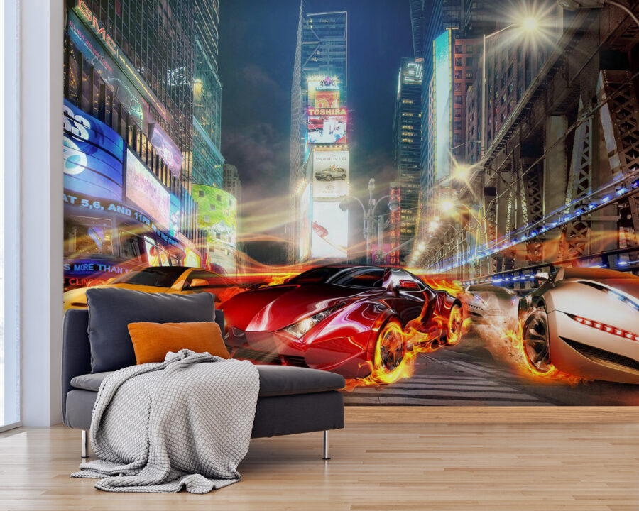Avete un bambino drogato di velocità o forse siete voi stessi un po’ pazzi per le auto? Date un’occhiata a questo fantastico murale di un’auto sportiva rossa che sembra in fiamme, letteralmente! È come fare un pit stop nel bel mezzo di una corsa ad alta velocità nel cuore della città. Immaginate che vostro figlio o figlia si senta come un mini corridore ogni volta che entra nella sua stanza. L’energia e le fiamme saltano praticamente fuori dalla parete, aumentando l’adrenalina. Perfetto per una stanza dei giochi o una grotta per uomini. Preparatevi a sfrecciare in un arredamento di grande stile!