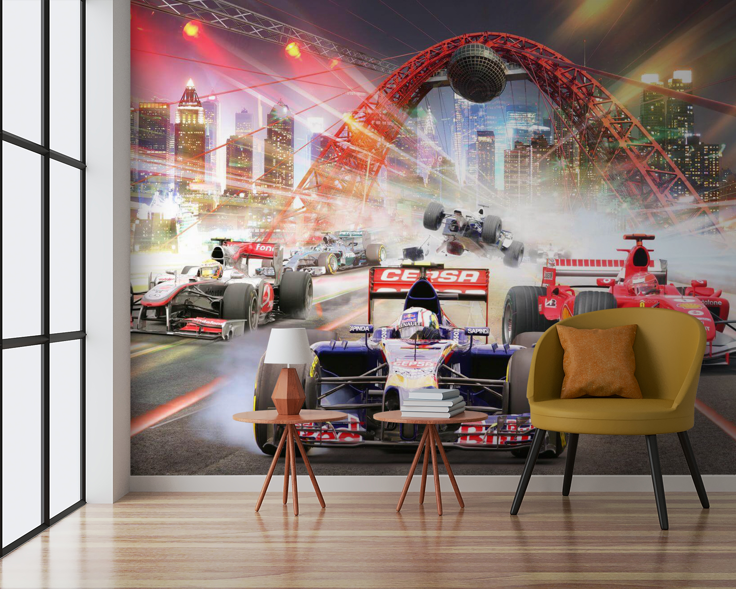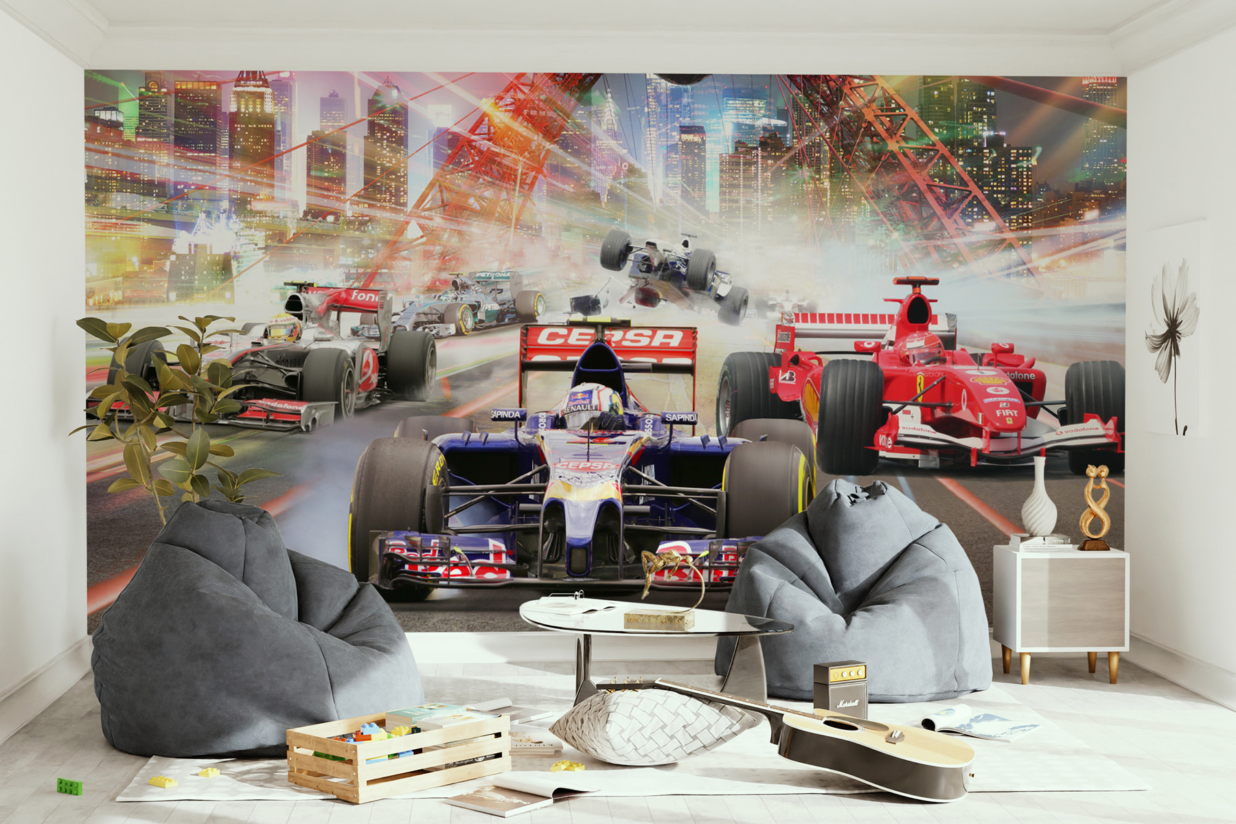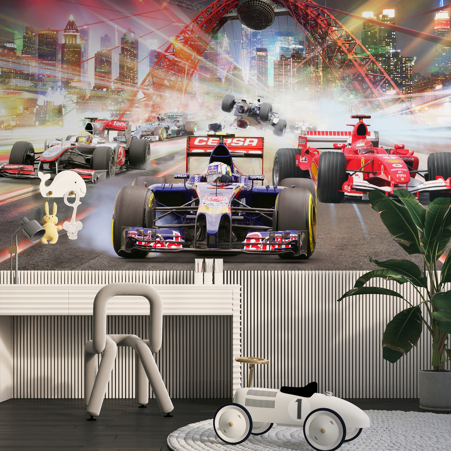 Quanto è bello questo murale? Pensate di ravvivare il vostro spazio con un’epica corsa ad alta velocità attraverso la città. Immaginate il brivido delle auto di Formula 1 che sfrecciano davanti a voi, sentendovi quasi parte dell’azione. Perfetto per la camera di vostro figlio, è come portare un po’ di atmosfera da pista. È ricco di colori vivaci e di movimento, tanto che è così dinamico che si può quasi sentire il rombo dei motori. Il vostro bambino o qualsiasi appassionato di auto nella vostra vita lo adorerà. Non è solo uno spettacolo: porta un po’ di adrenalina nella vita di tutti i giorni. Ideale per rendere entusiasmante qualsiasi spazio!