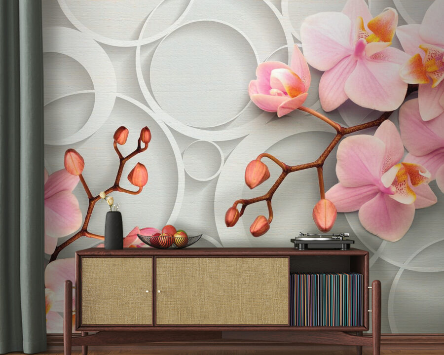 Trasforma il tuo spazio con il murale “Soft Blooms Against a Circular Backdrop” (Delicati fiori su uno sfondo circolare). Immagina di entrare in una stanza dove delicate orchidee rosa danzano su uno sfondo delicato di cerchi fantasiosi, come se la natura e l’arte avessero deciso di organizzare una piccola festa accogliente. Le tonalità tenui e il design elegante creano un’atmosfera leggera e allegra, perfetta per le pigre mattine domenicali o per sorseggiare un caffè mentre si legge un buon libro. Chi non ama un po’ di fascino floreale per rallegrare la giornata? È più di un semplice arredo, è uno stato d’animo. Immagina come i tuoi amici rimarrebbero a bocca aperta entrando nella stanza: complimenti garantiti! Abbraccia un tocco della bellezza della natura direttamente sulle tue pareti e guarda la tua casa sbocciare con stile.