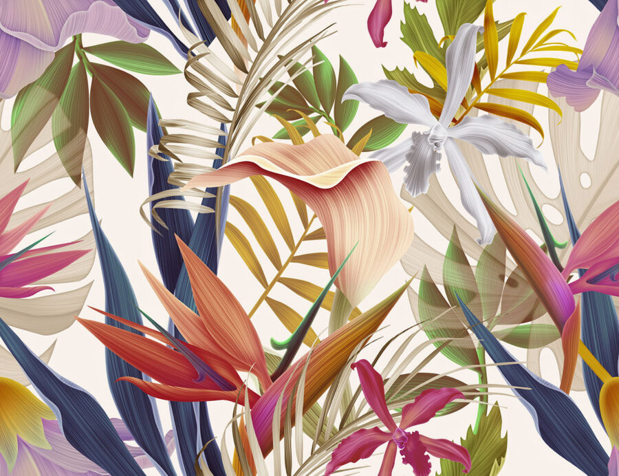 Trasformate qualsiasi stanza in un paradiso vibrante con questo splendido murale di foglie e fiori tropicali colorati. Immaginate di entrare nel vostro spazio e di sentirvi come se foste appena entrati in un giardino lussureggiante. Le ricche tonalità risaltano su qualsiasi sfondo, creando un’atmosfera invitante a cui è difficile resistere.