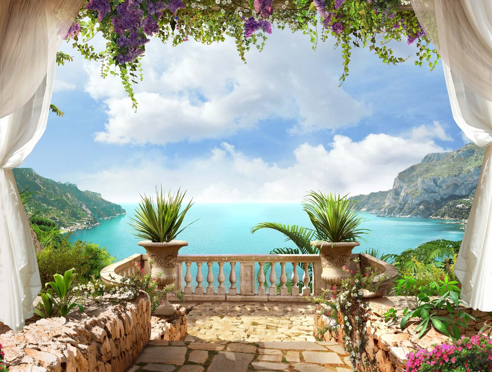 Immaginate di entrare in una stanza e BAM: questo murale vi porta su una terrazza mediterranea da sogno, con piante rigogliose, un mare blu scintillante e quel tipo di cielo infinito che vi fa venire voglia di respirare a fondo. È come una mini-vacanza senza biglietto aereo o crema solare. Basta appenderlo e improvvisamente il vostro spazio sembrerà più grande, più luminoso e più zen. Quelle piante in vaso? Aggiungono un tocco affascinante, quasi cinematografico, come se ci si trovasse in un giardino segreto di una favola. Onestamente, è perfetto per tutti coloro che vogliono una dose quotidiana di “wow” senza dover fare i conti con il giardinaggio vero e proprio. Un mix perfetto di natura ed evasione.