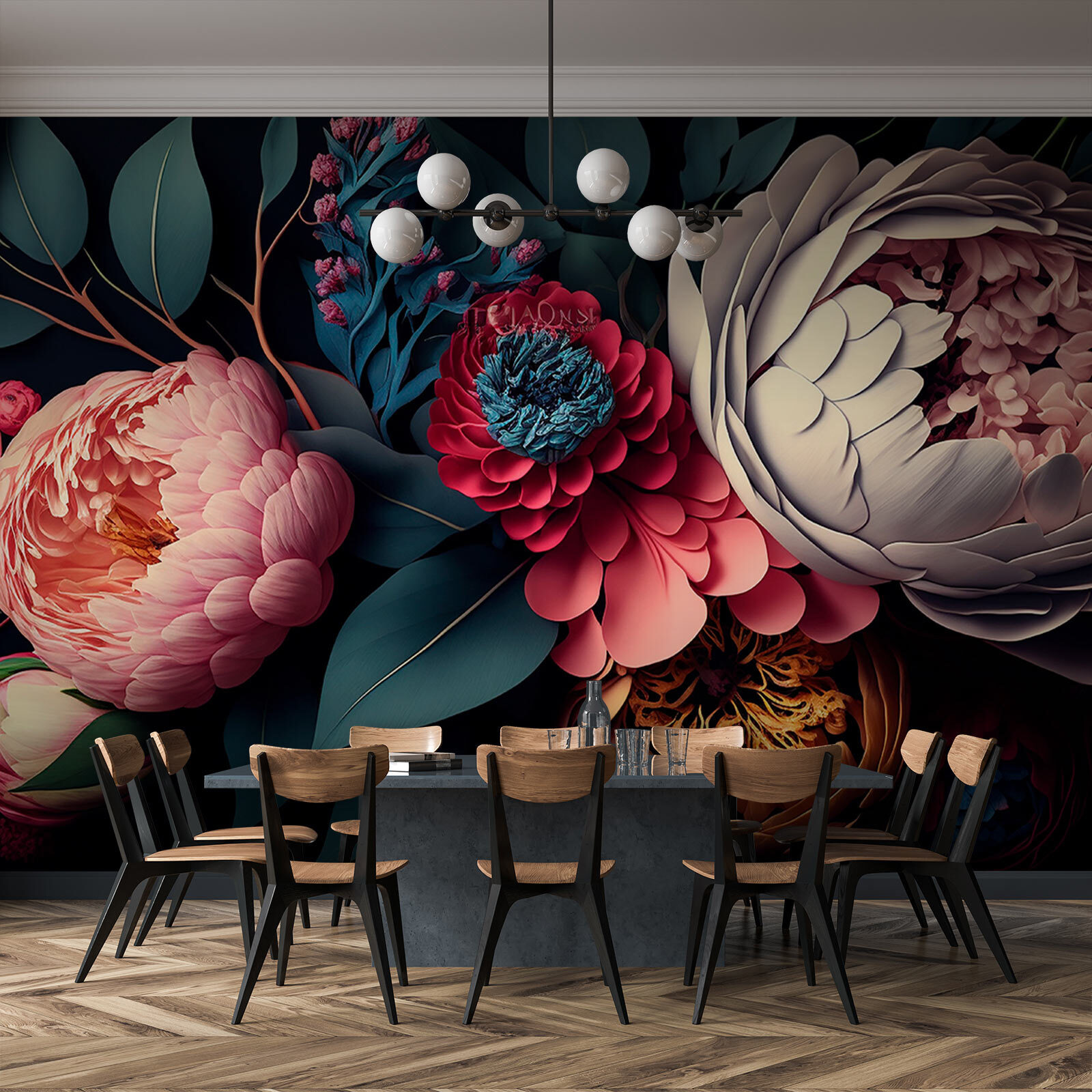 Avete mai desiderato portare il romanticismo e il rigoglio di un giardino estivo nel vostro salotto? Il murale “Elegante bouquet di fiori vibranti” fa al caso vostro! Le incredibili peonie e gli altri fiori che spuntano dalla parete sembrano dipinti da un artista che sogna ad occhi aperti e che ama la natura. I colori sono così ricchi e profondi che si può quasi sentire il profumo inebriante delle fioriture (beh, quasi). Immaginate di sprofondare nella vostra poltrona preferita, con una tazza di tè caldo in mano, e di essere circondati da questa splendida esposizione floreale. È come entrare in un giardino segreto, solo che è a casa vostra! Perfetto per chiunque voglia dare un tocco di vita (e di arte) al proprio spazio. Che si tratti di decorare la camera da letto, il soggiorno o un accogliente angolo lettura, questo murale trasforma qualsiasi stanza in un paese delle meraviglie botanico. Ogni sguardo promette un nuovo dettaglio che cattura l’attenzione e solleva lo spirito. È semplicemente… incantevole.