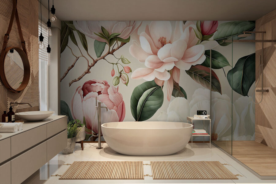 I tratti morbidi dell’acquerello conferiscono un’atmosfera serena e rinfrescante. Perfetto per chi desidera un rifugio simile a un giardino all’interno della propria casa. Se siete appassionati di fiori o semplicemente amate le decorazioni uniche e di design, questo murale è un modo meraviglioso per elevare la vostra zona giorno con calore ed eleganza.