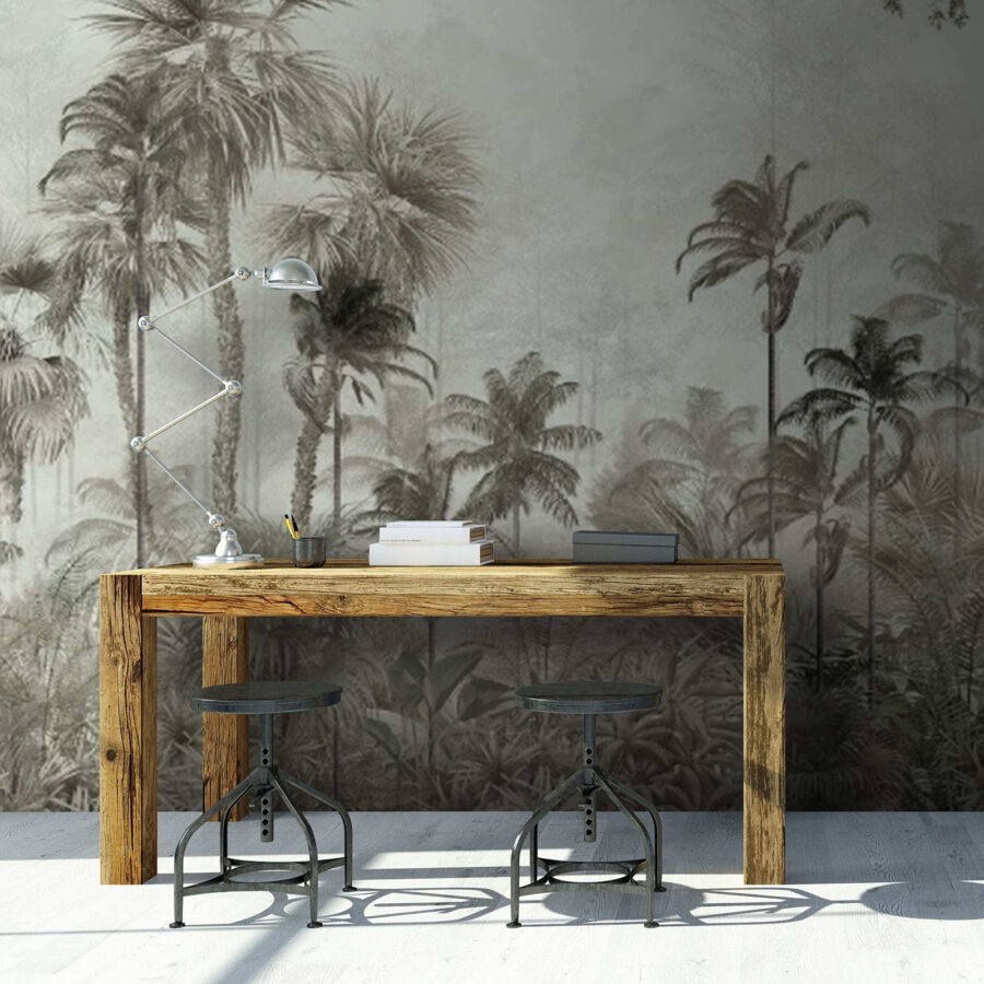 Trasforma qualsiasi stanza in un rifugio tranquillo con questo splendido murale che raffigura un gruppo di palme che fanno capolino da una foresta nebbiosa. È come entrare in una giungla da sogno senza mai uscire di casa. Le tonalità tenui e l’atmosfera nebbiosa creano un ambiente calmo e rilassante, perfetto per pomeriggi pigri o serate accoglienti. Immagina di rannicchiarti con un libro o sorseggiare il tuo drink preferito mentre ti senti avvolto dalla natura. Per non parlare del fatto che è un ottimo spunto di conversazione. Gli ospiti ti chiederanno sicuramente da dove viene quel paradiso sereno! Abbraccia il lato selvaggio dell’arredamento e lasciati trasportare da questo murale.