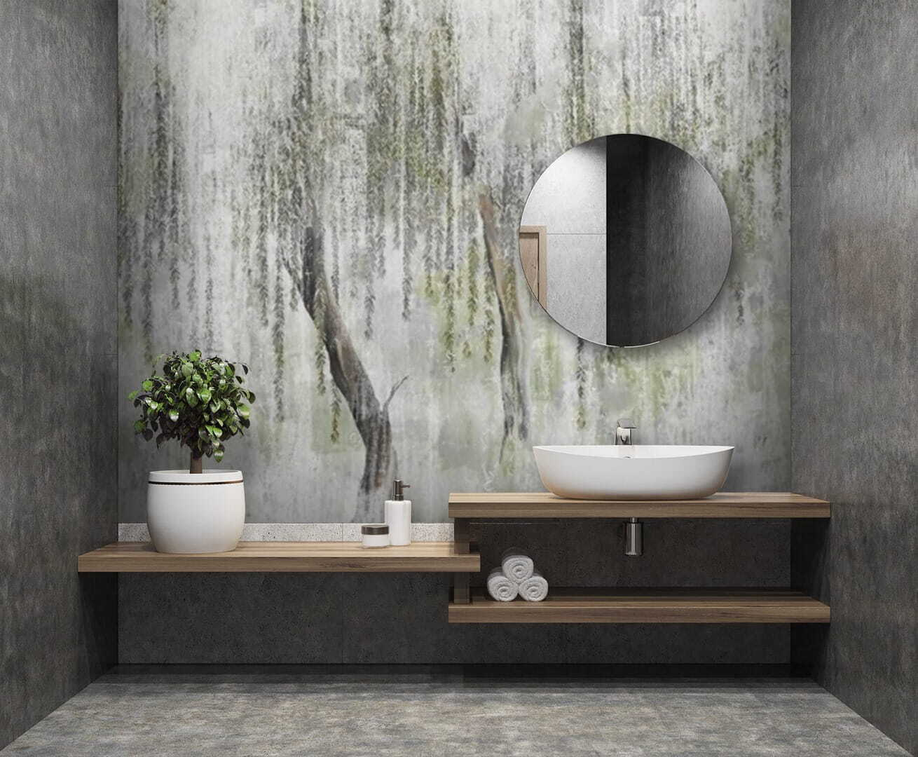 Guardate esattamente come apparirà il vostro spazio con la nuova carta da parati prima di acquistarla. Visualizzazione professionale da parte di designer esperti senza alcun costo o obbligo di acquisto.