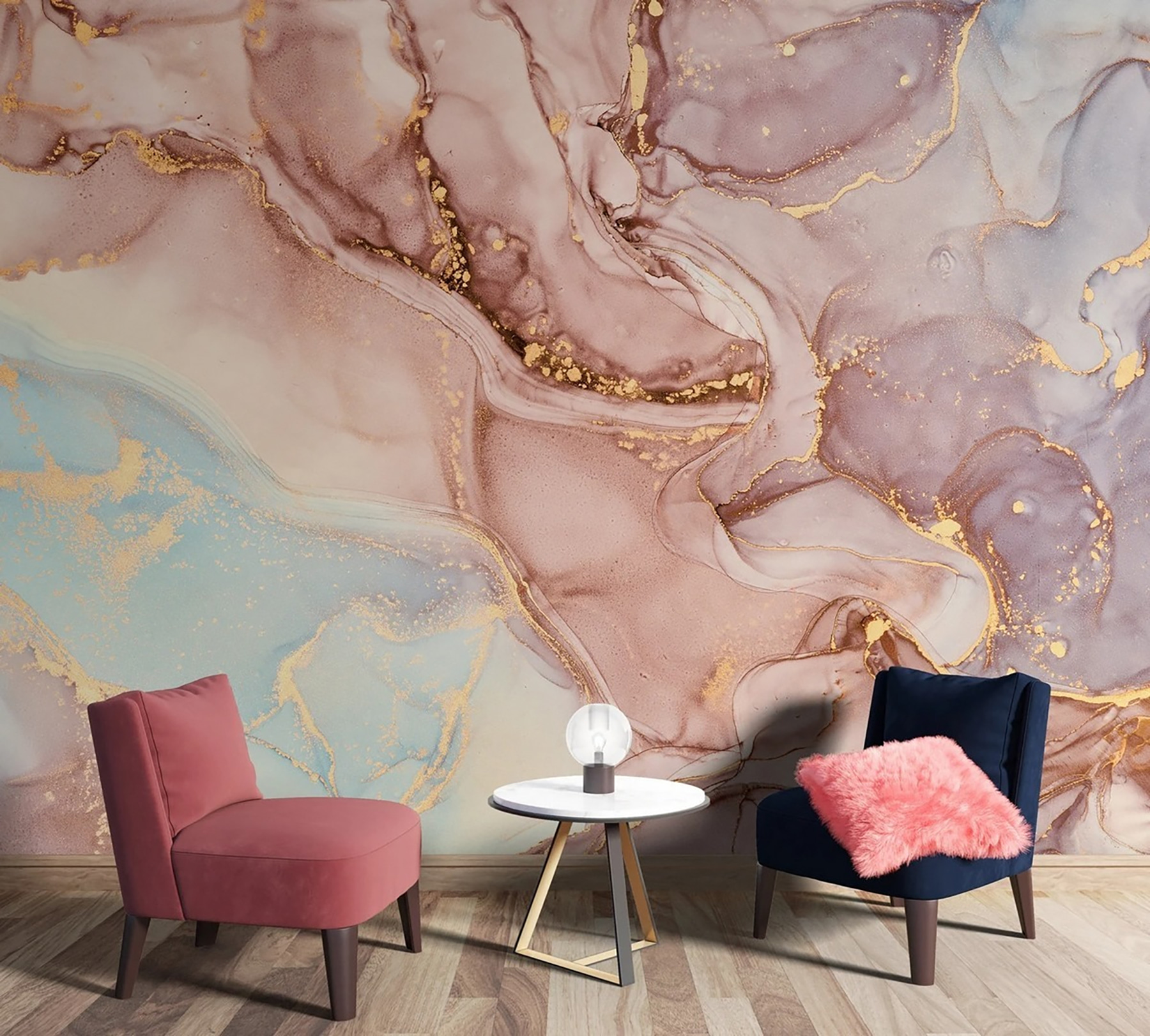 1 recensione per Carta da parati Motivo astratto in marmo con riflessi