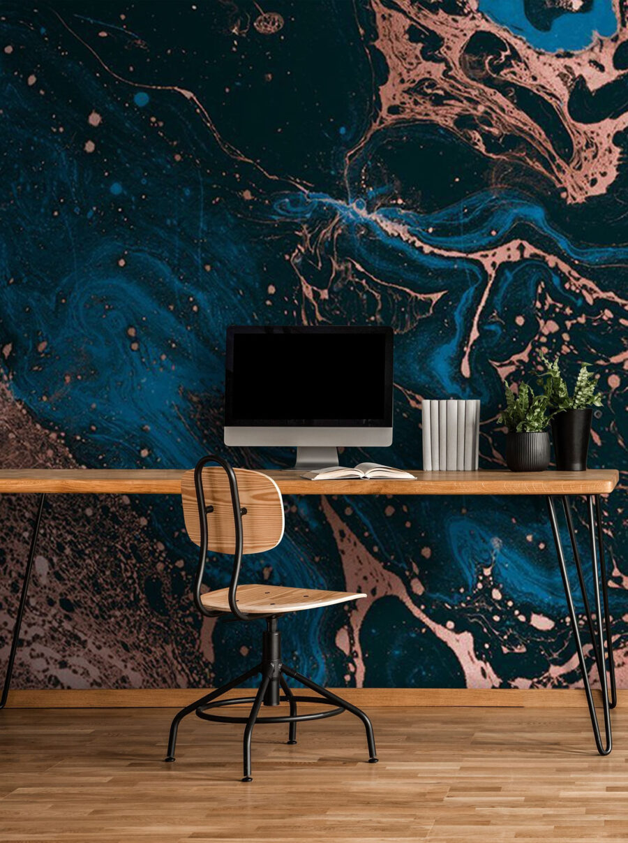 Ciao a tutti! Date un’occhiata a questo ipnotico murale chiamato “Blue and Brown Liquid”. Non si tratta di una normale carta da parati: è come una pallina di gelato cosmico. Pensate a vortici di blu profondo e marrone terroso che si fondono insieme, creando questo effetto trippy e marmoreo. Perfetto per trasformare qualsiasi stanza in una mini mostra d’arte.