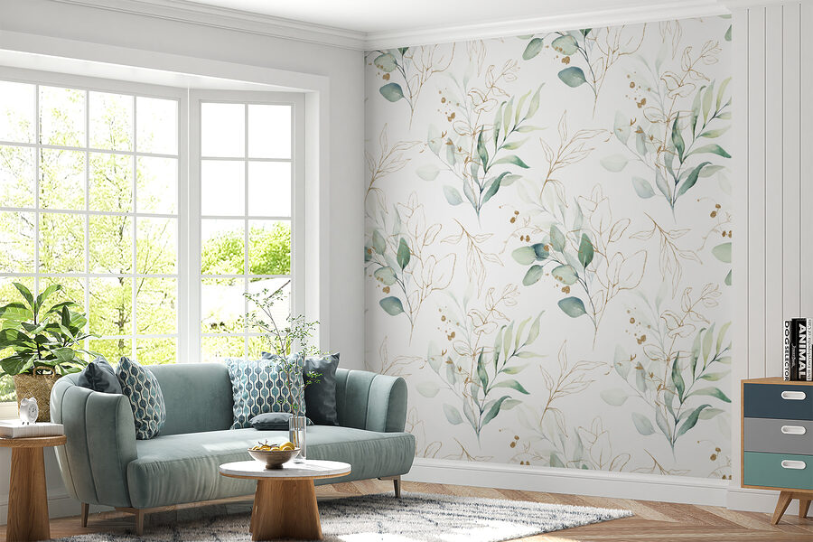 3 recensioni per Carta da parati Modello di foglie botaniche ad acquerello